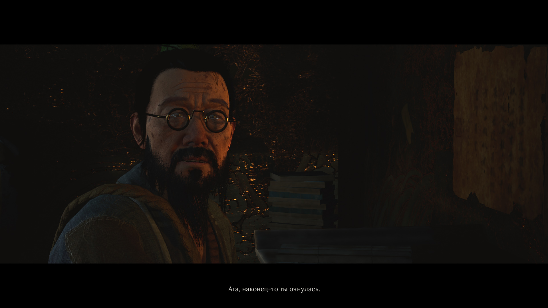 Обыщите другие дома, убивая зараженных. Можете перейти на другую сторону по мостикам вправо, а можете пойти вперед, вверх по ступеням и попасть во двор, где сидит Рассказчик.