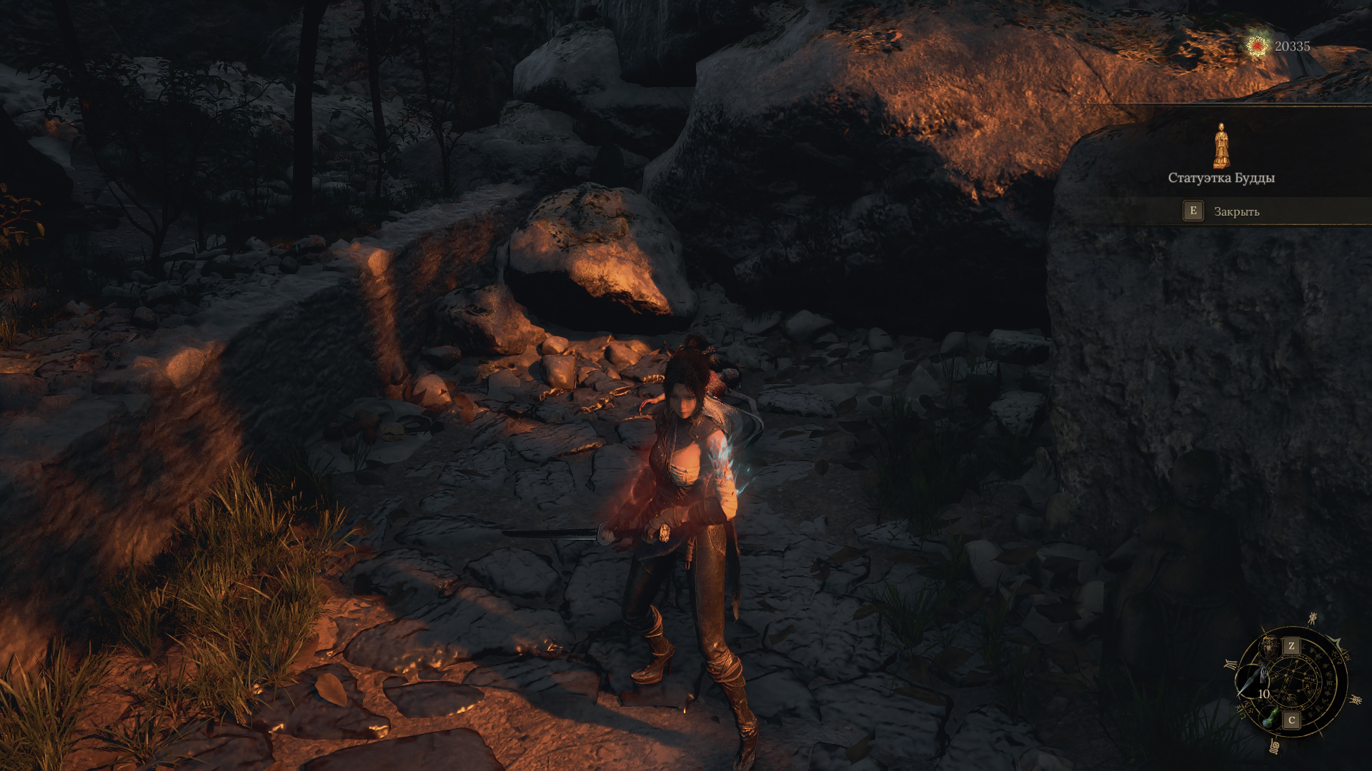 В общем, попав внутрь святилища, первым делом активируйте его. К слову, на ступенях перед одним из входов есть статуэтка с синим свечением. В ней говориться, что вам нужно помолиться. Стоя перед статуэткой, нажмите на клавишу Y и выберите жест «Помолиться», чтобы получить божественный дар (можно пожертвовать у статуи на втором этаже святилища Шу, чтобы понизить уровень Безумия).