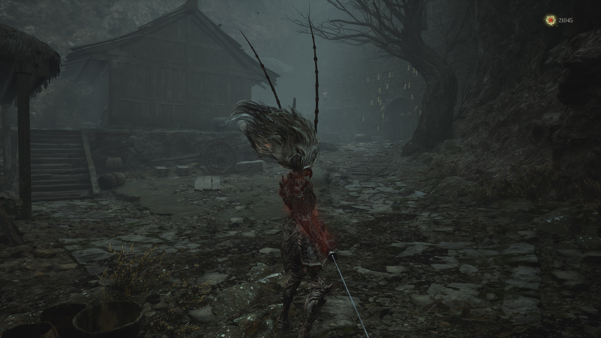 Покиньте двор через ворота справа и подберите новое оружие — алебарду. Отсюда можно пойти налево (тупик), направо вниз или направо вверх. Поднимитесь по склону справа, чтобы найти особую пилюлю и выслушать мальчика. Впоследствии у него будет для вас квест, но данное взаимодействие необязательно и ничего не дает.