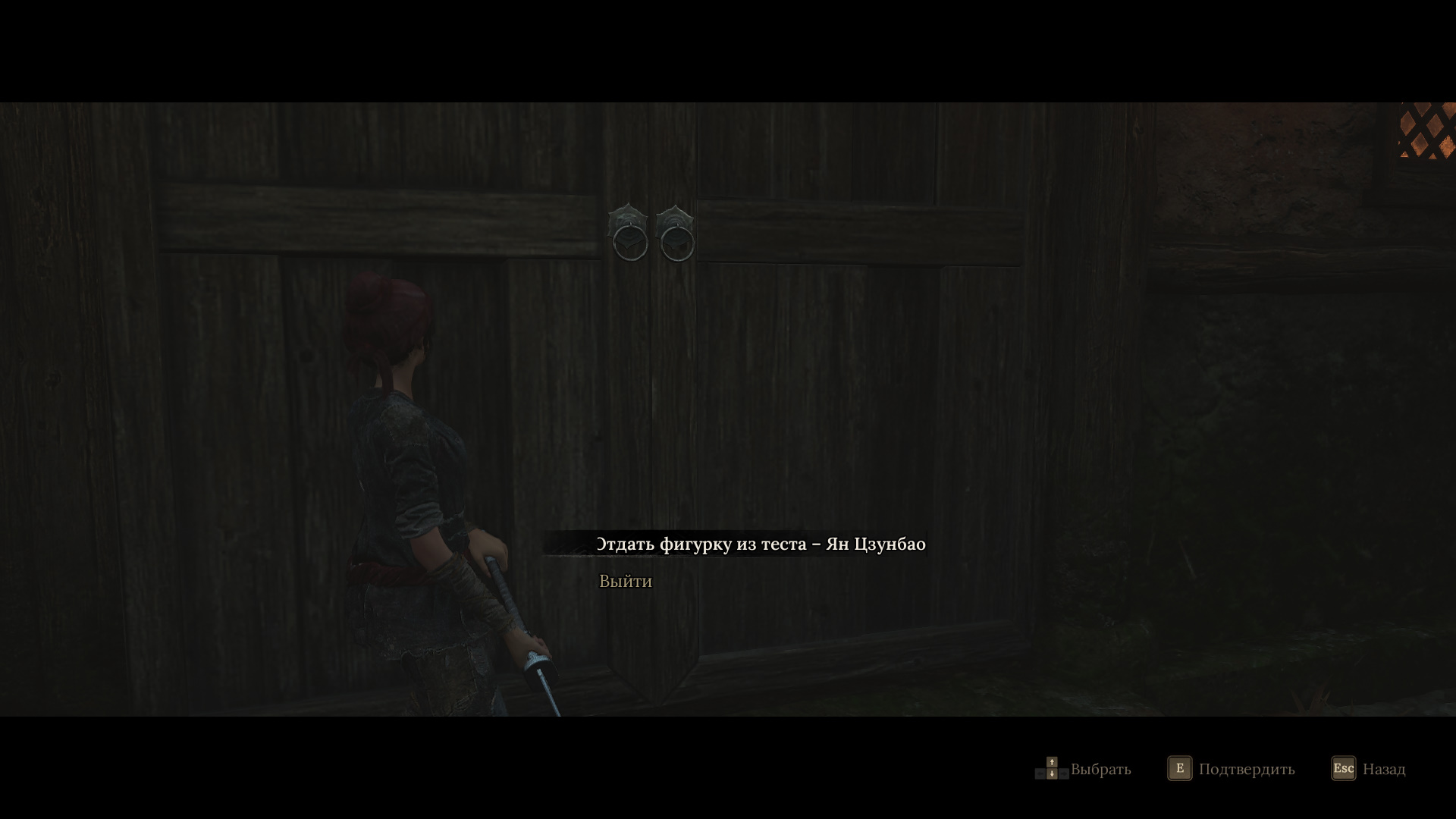 В центре есть рычаг, с которым можно взаимодействовать. Сделайте это, чтобы получить уведомление: для открытия требуется ключ от святилища Шу. Поднимитесь на второй этаж и поговорите с Цяо Инь, чтобы передать амулет из красного дерева, который получили от раненного NPC в Священном храме в самом начале игры. Вы получите божественный дар. Это статуэтка, которую можно поднести у статуи рядом со старушкой. Благодаря этому вы понизите Безумие.