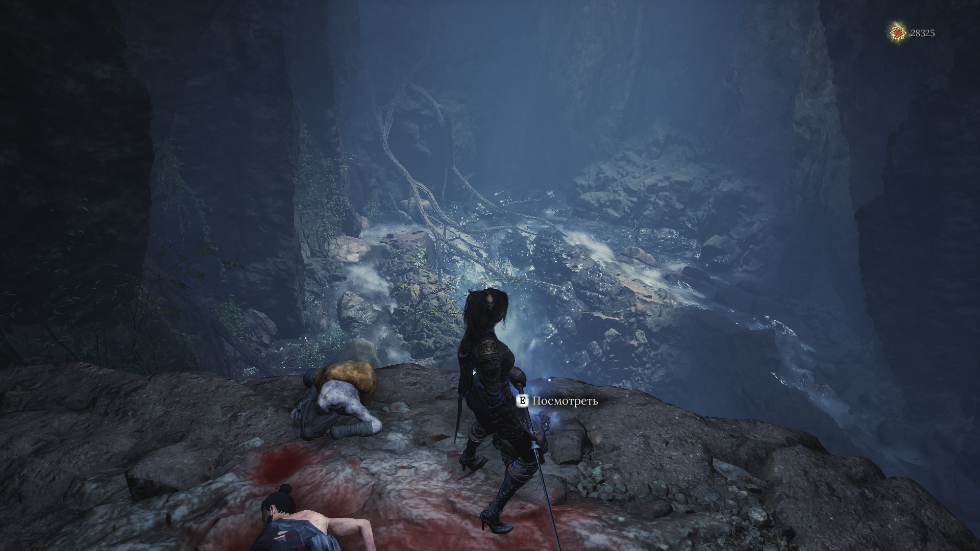 Бегите вверх по склону, подберите метательные ножи, слева ищите 2 семени Лотоса чистого разума (снимает воздействие отчаяния). Пройдите вправо и на краю утеса слева ищите Даму в красном. Поговорите с ней, чтобы получить созревшую Красную ртуть (дает 1200 единиц красной ртути). На другой стороне реки виден сундук, но добраться до него отсюда не выйдет.