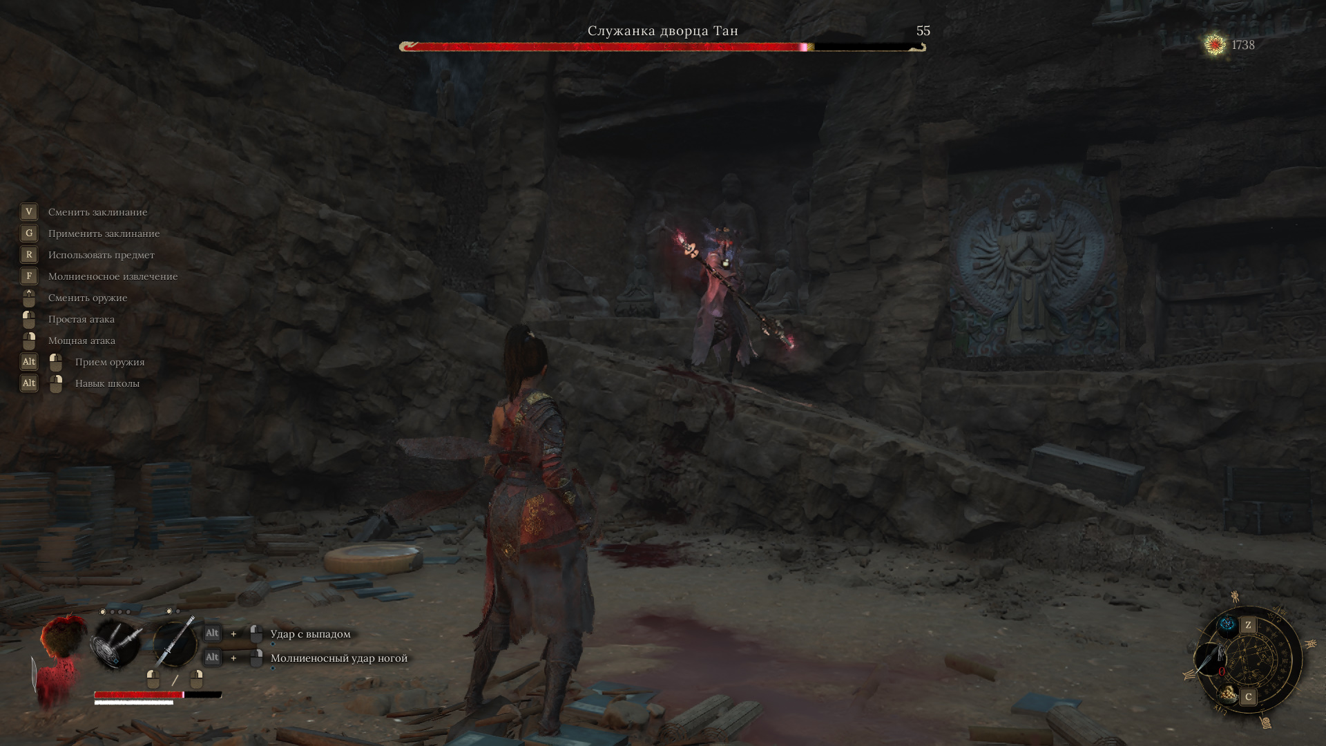 Вернитесь к зданию, где была Служанка дворца Тан, и спрыгните в яму напротив него (ранее была затоплена). Вам предстоит сразиться против Командующей Хунлань. За победу в бою вы получите ключ от священного храма (открывает левую дверь во дворе перед Священным храмом), божественное письмо «Вэй — Комбо-сила» (нанося серию атак, вы повышаете урон).