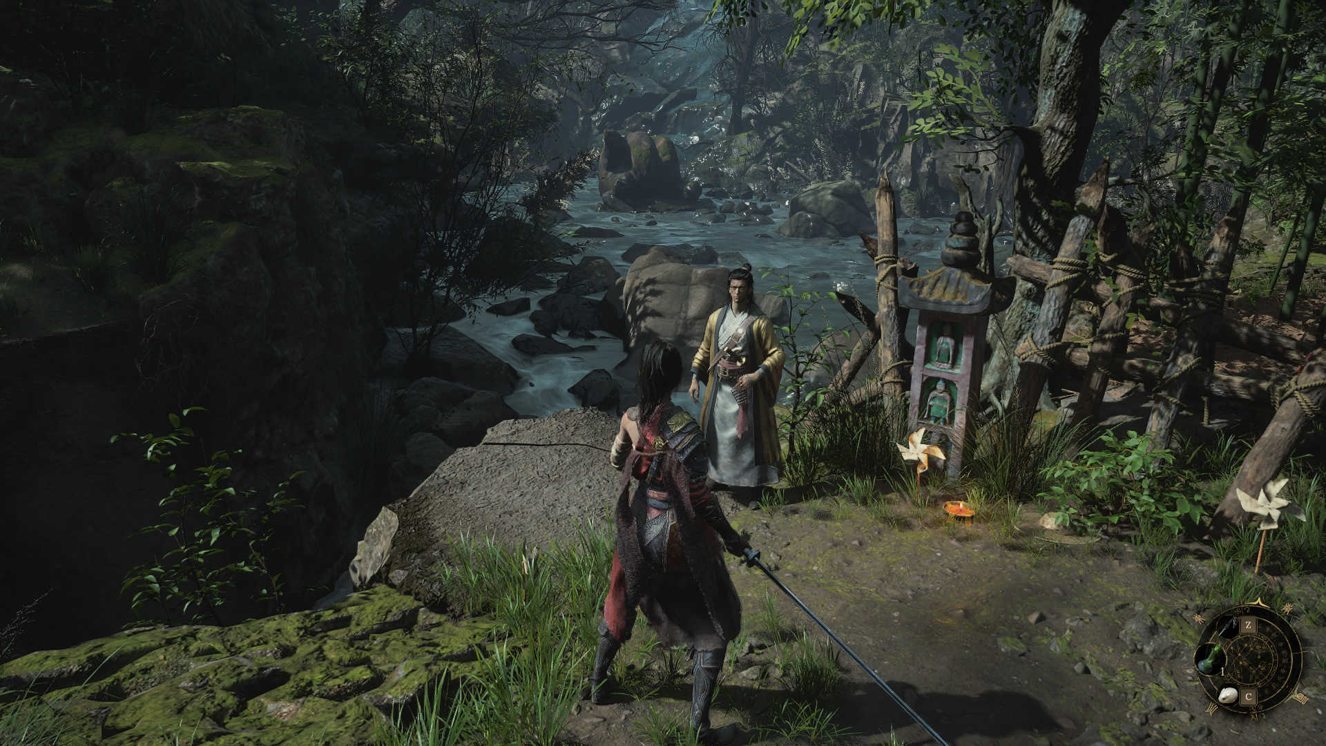 Спуститесь к реке, пересеките ее и пообщайтесь с Нянем Суйчаном. Согласитесь ему помочь. Вы получите жест «Мое почтение» и костяной свисток. В будущем этот свисток можно будет использовать, чтобы призвать любых союзников в бой. Но чтобы заручиться такой поддержкой, для начала вам придется выполнить их задания.
