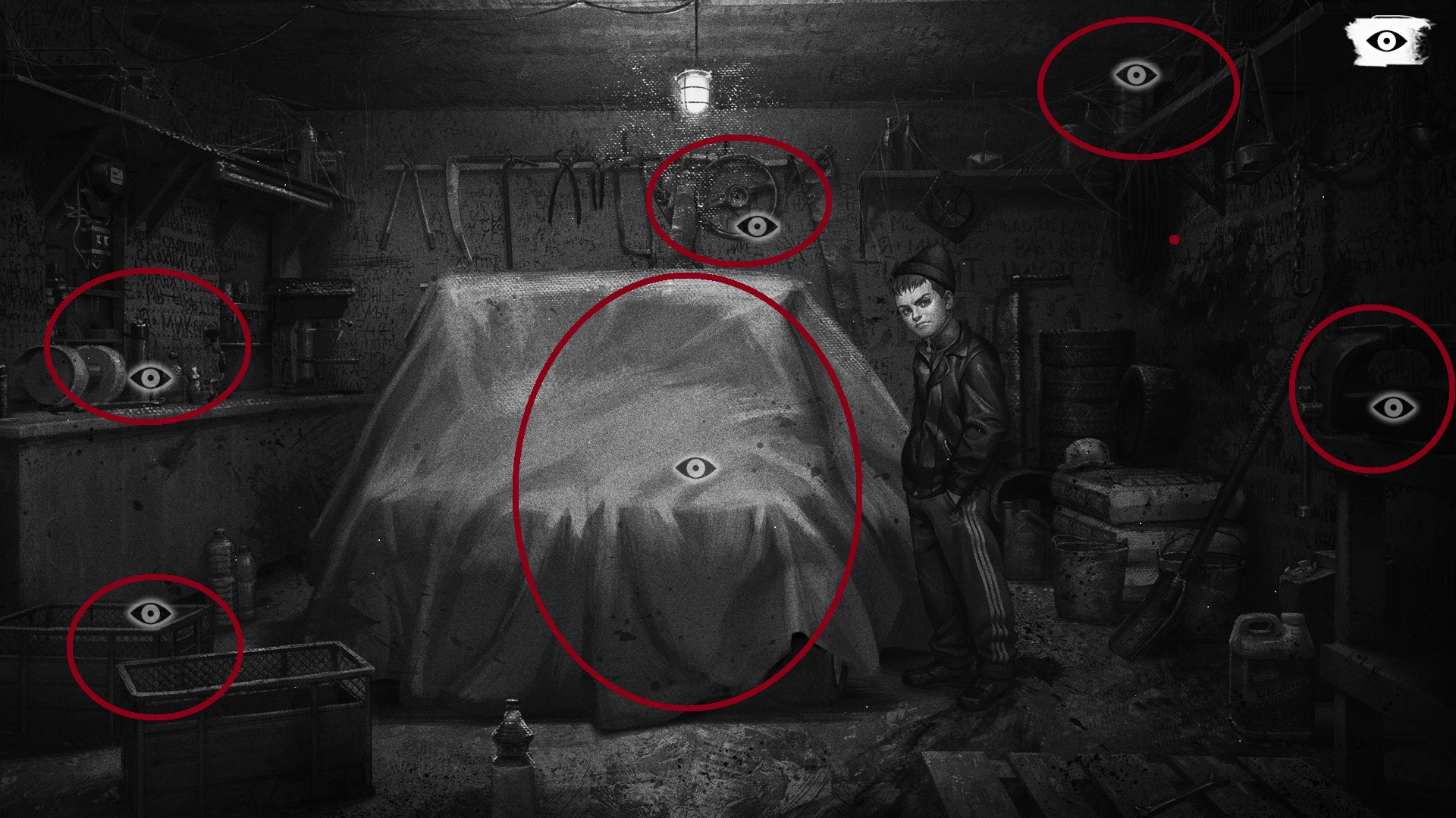 А вот если попадете в гараж, то придется осмотреть 6 интерактивных объектов в этой локации, и этого будет достаточно для получения ачивки: