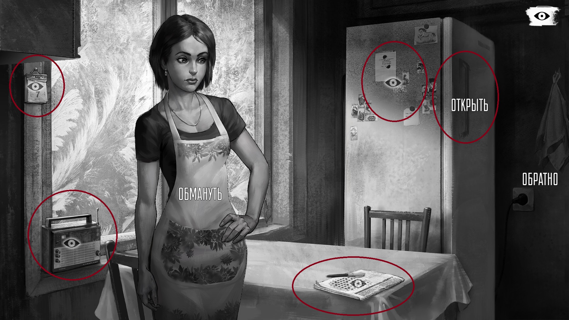 - Радиоприемник, стоящий на подоконнике. Для данной ачивки его достаточно осмотрите один раз, но, чтобы получить достижение «Тайное послание», щелкните по радио трижды. На третий (и все последующие разы) вы услышите детскую считалку, за что и получите трофей. Мама должна находиться в кухне!