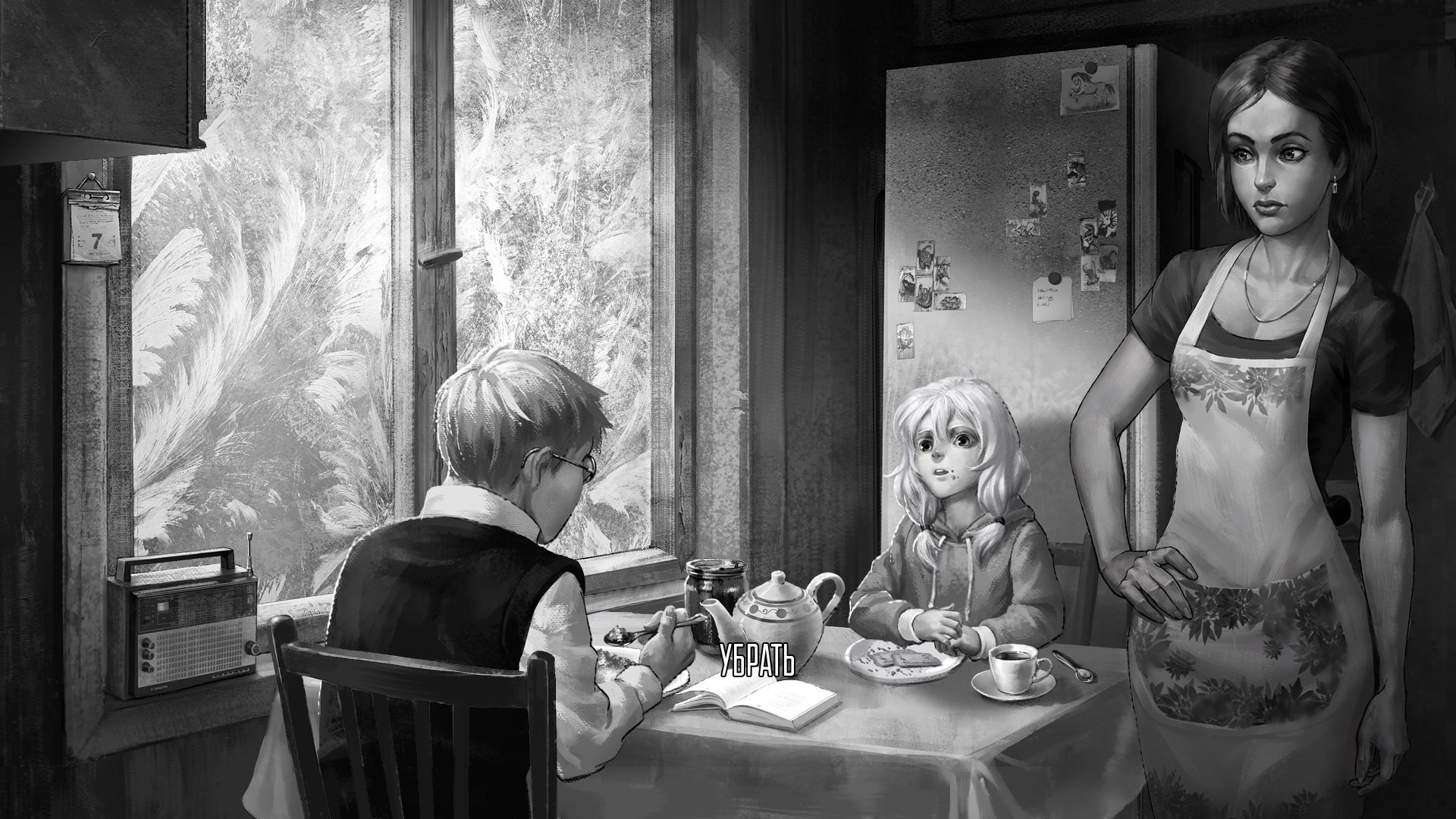 После вступительного монолога главного героя, двенадцатилетнего мальчишки Антона, действия перенесутся на кухню его родного дома. Мать просит убрать книгу — ничего не поделать, жмите на надпись «Убрать» на экране.