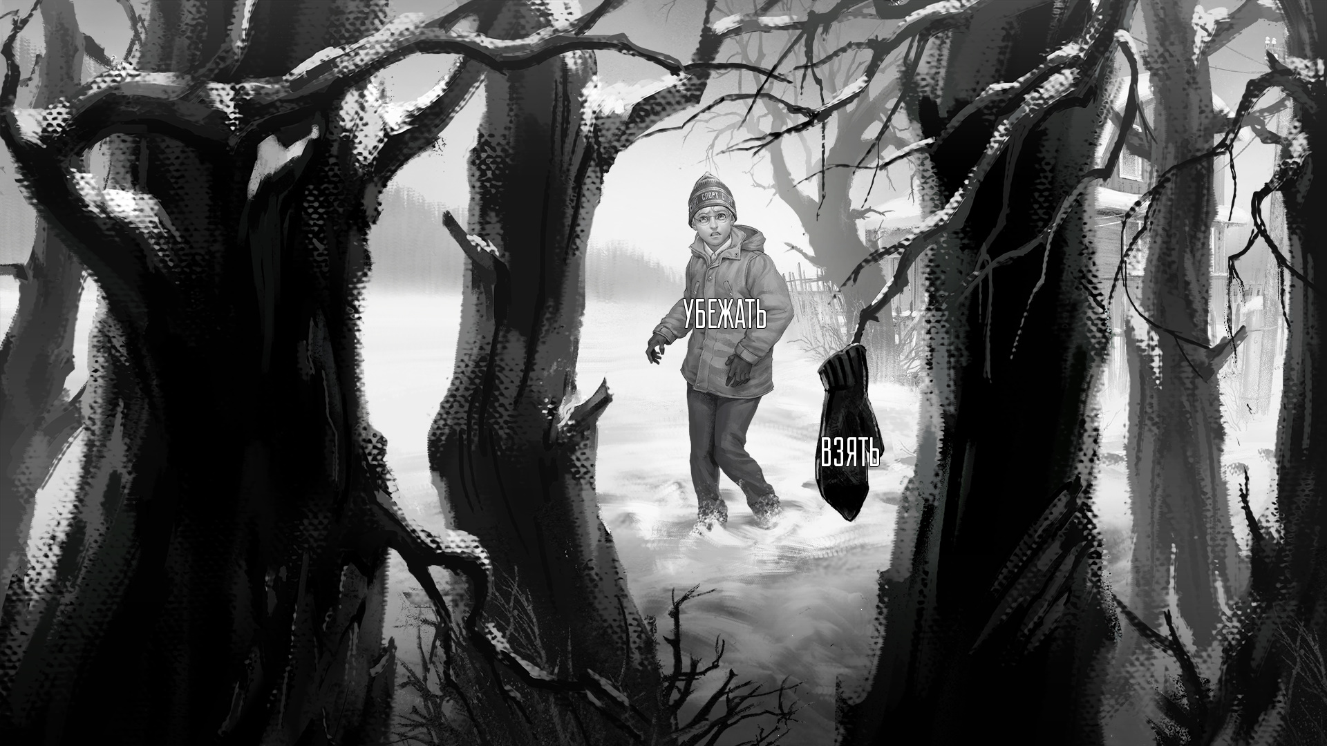 В данном случае Антон сбежит и оставит варежку на дереве. За это полагается достижение «Беги, спасайся». Но проблема в том, что эта варежка является уликой, так что ее на самом деле лучше всего подобрать (для хорошей концовки).