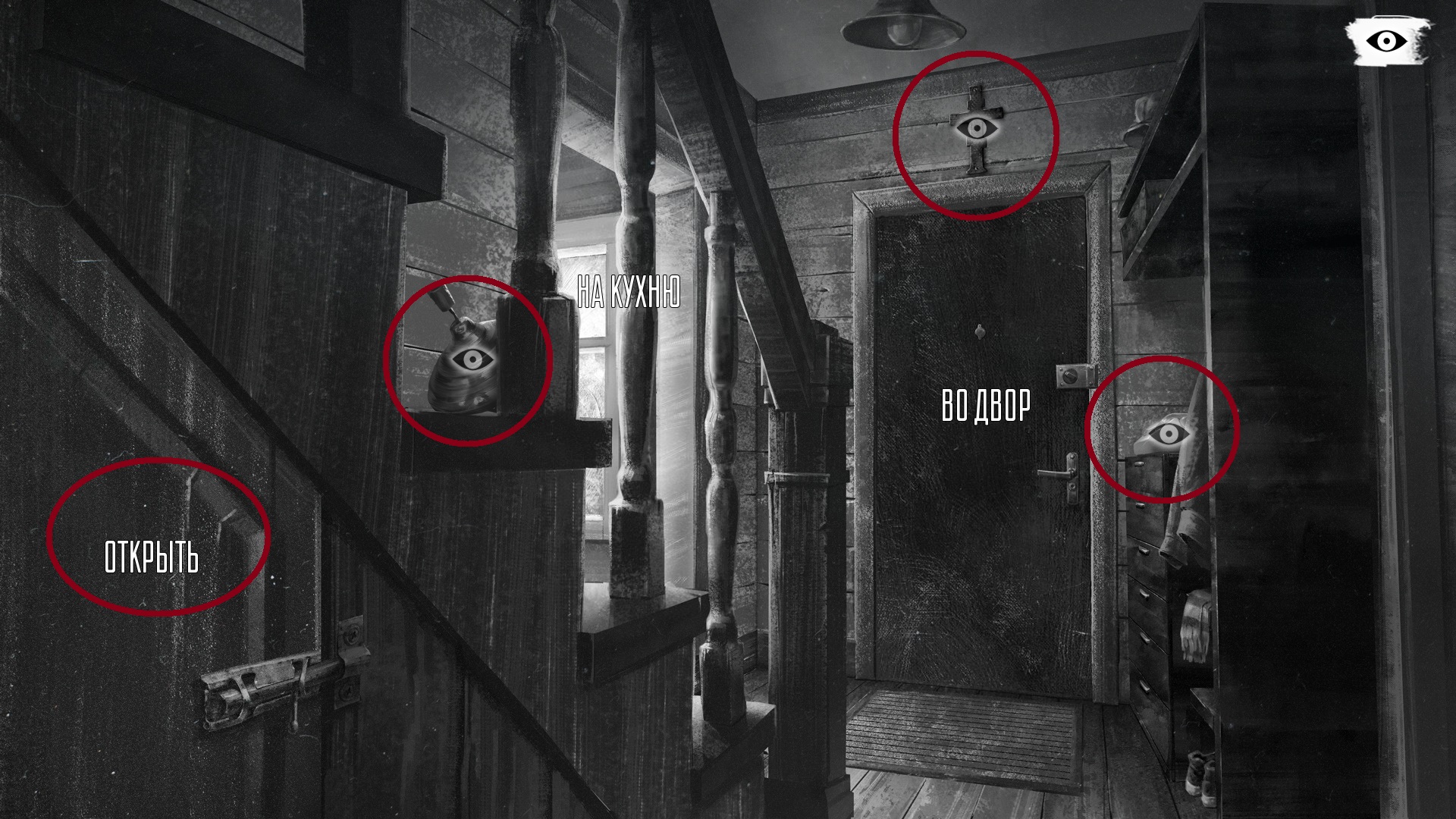 Далее история продолжится. Вы узнаете, что родители Антона и Оли (его сестры) находятся на грани развода. Что Оли снятся кошмары, а прошлой ночью такой же кошмар одолел и самого мальчишку. Когда появится возможность, жмите на «Открыть» на окне справа. Вы увидите в поле силуэты зверей.