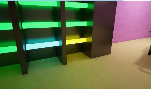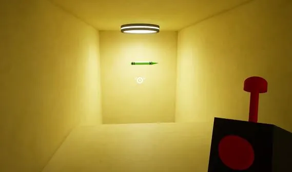 Пройдите за дверь, чтобы оказаться в огромном помещении с множеством столов и скамеек. Вам нужно пройти по кругу и собрать 8 карандашей, разбросанных преимущественно рядом с напольными рисунками. Как только соберете все 8 карандашей, идите в левый дальний угол, где в стене находится отверстие для выброса мусора. Выбросьте в эту дыру поочередно все карандаши. На столе напротив этого мусорного отверстия лежит желтая ключ-карта. Подберите ее и взаимодействуйте с пультом с левой стороны от отверстия. Так вы запустите робота-уборщика. Он проедет по всей комнате, осмотрит ее и, если не обнаружит карандашей, то из слота с правой стороны от мусорного отверстия выпадет фиолетовая ключ-карта. С этой картой вы можете пользоваться местным фуникулером!