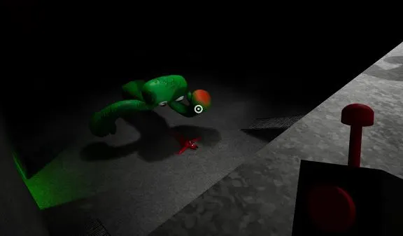Приблизительно в этот момент может поменяться освещение комнаты. Поскольку кубы в углу вы поставили на место, просто вернитесь и сядьте на свой стул. То, что находится за стенами, монстр все равно не видит. Важно, чтобы вы сидели на месте, и цветные кубы в углу были на своих позициях. В дальнейшем нужно закрывать боковые двери.