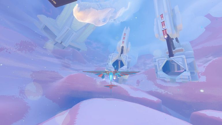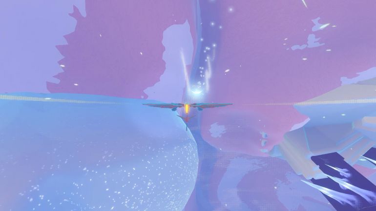 Как только заманите всех трех птиц, то лед треснет и появится огромная птица — это Порхающая Стая, второй титан, с которым вы встретитесь в игре. Преследуйте огромную птицу. Опять же, ее не нужно догонять, просто следуйте за ней. Путь будет намного более продолжительным по сравнению с малыми птицами, но, в конце концов, существо превратится в синюю сферу. Залетите внутрь, щелкните несколько раз ЛКМ, чтобы разрушить сферу и освободить титана. Побеседуйте с Порхающей Стаей, а затем займитесь сбором появившихся на локации белых сфер. Никаких реликвий более здесь мне найти не удалось. После этого воспользуйтесь синим порталом, чтобы вернуться обратно на локацию «Пространство Солнца».