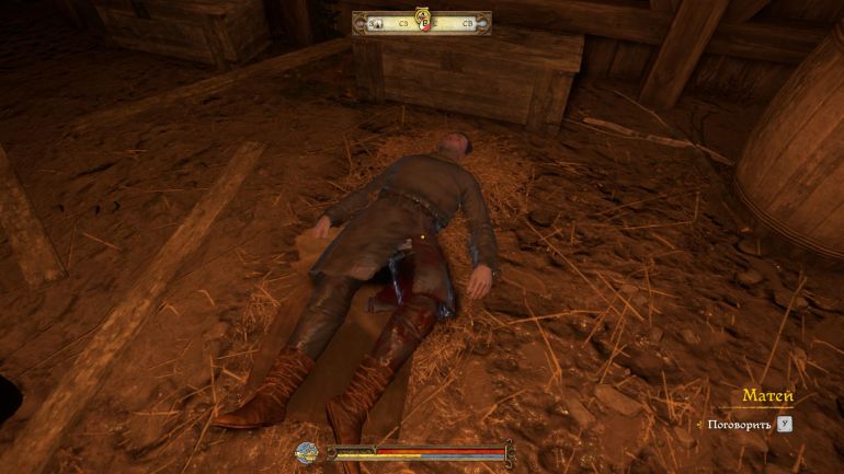 Отправляйтесь в Мрхоеды и найдите охраняемое здание. Побеседуйте с любым дозорным и расспросите за пленника и Матея. Матей ранен и лежит на конюшне — идите в верхнюю часть города, зайдите в здание конюшни и пообщайтесь с приятелем. От него вы узнаете о море. Следуйте в указанный дом напротив конюшни (будет отмечен маркером) и пообщайтесь с местным рихтаржем Мелихаром.
