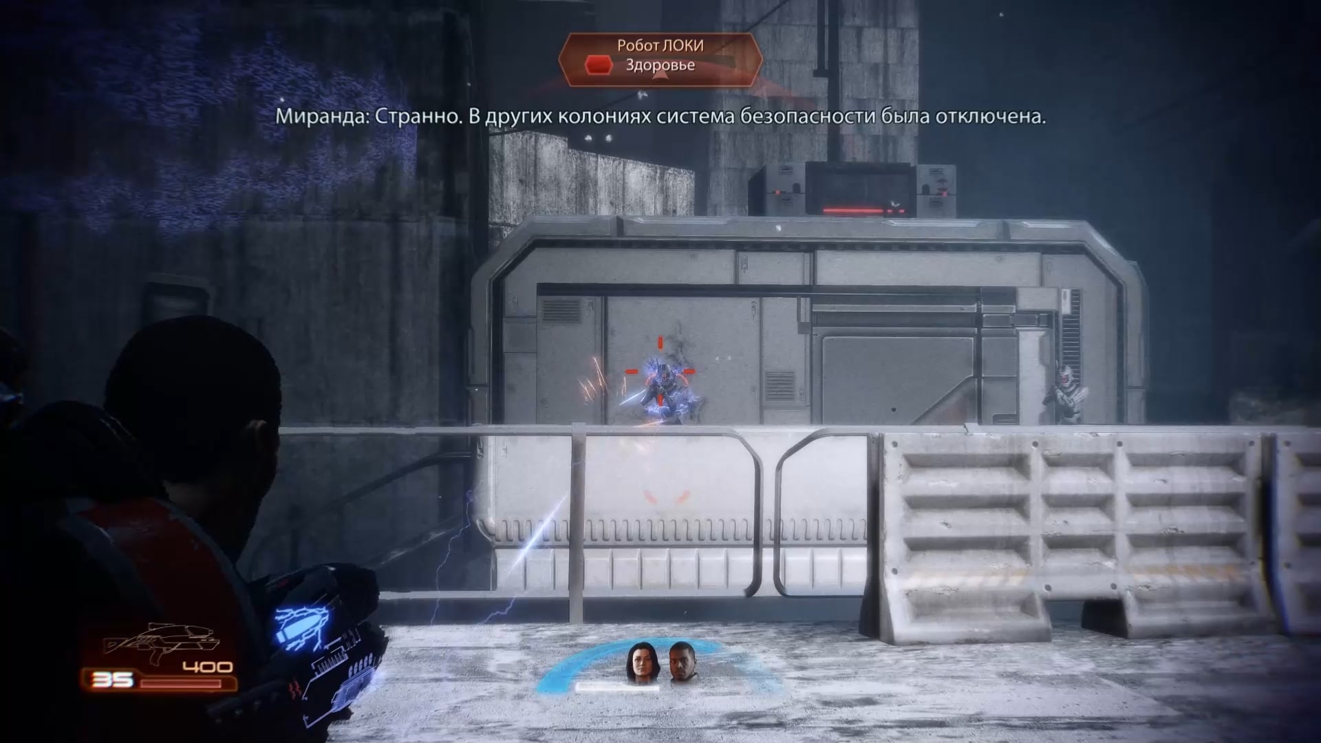 Если все сделано верно, то запустится катсцена во время которой нападет огромный робот ИМИР. Он хорошо бронирован и защищен силовым щитом. Для снятия щита подойдет способность Миранды «Перегрузка», а против брони сработает крупнокалиберное оружие вроде дробовика или гранатомета.