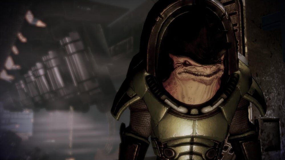 Пообщайтесь с Окиром о клонировании и увидите его главный экземпляр. Наемники запустят отравляющее вещество, поэтому вам придется отключить вентиляцию (или не делать этого) — 8 очков Героя (Отступника). Из лаборатории заберите исследование «Кроганская живучесть», спуститесь вниз и убейте всех берсерков, включая главаря наемников, Джедору. К сожалению, Окиру помочь не удастся, поэтому достаньте из капсулы его сына. Попав на корабль, можете выпустить крогана. Капсула находится на четвертом уровне, в боковом отсеке. Открыв ее, вам придется переубедить крогана, чтобы заработать 2 и 7 очков Героя (или Отступника, если не сможете). У Шепарда появится новый напарник по имени Грюнт.