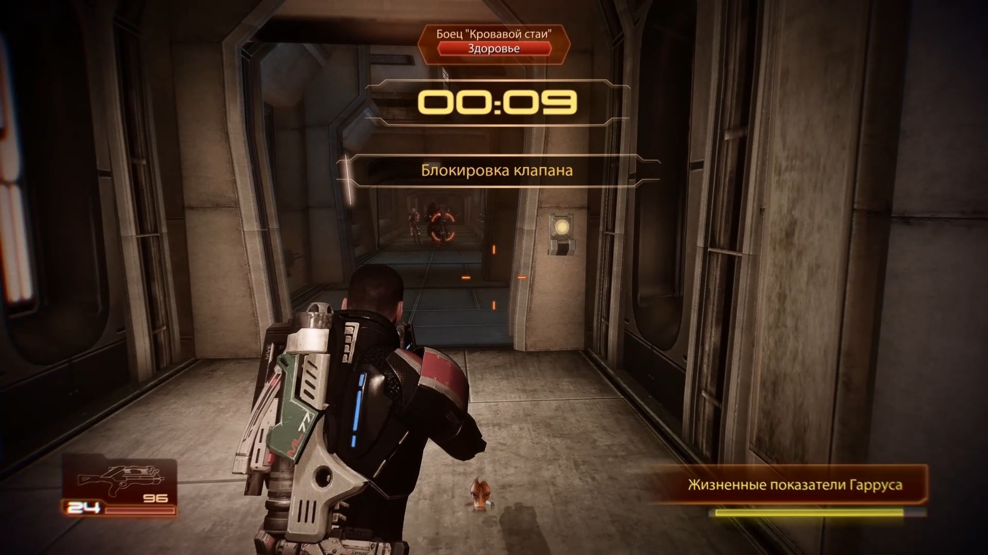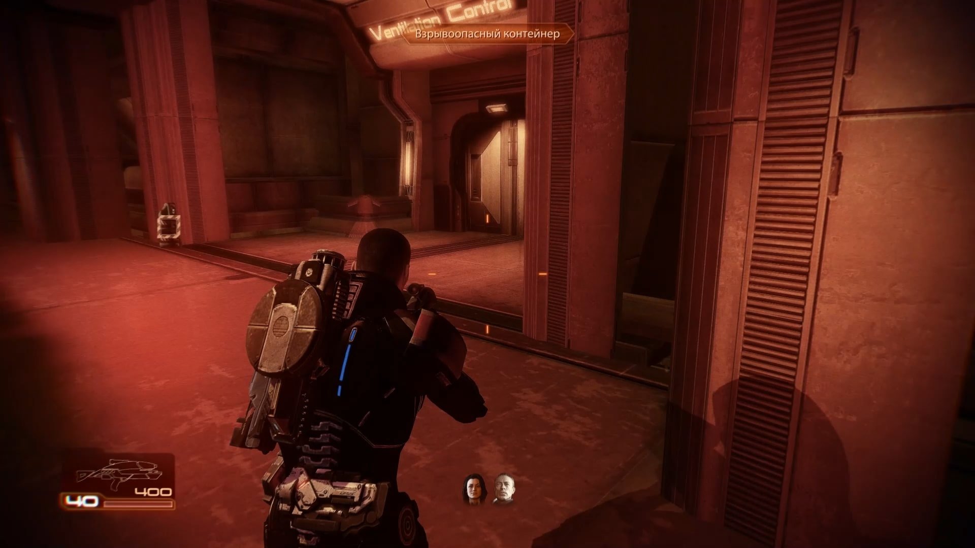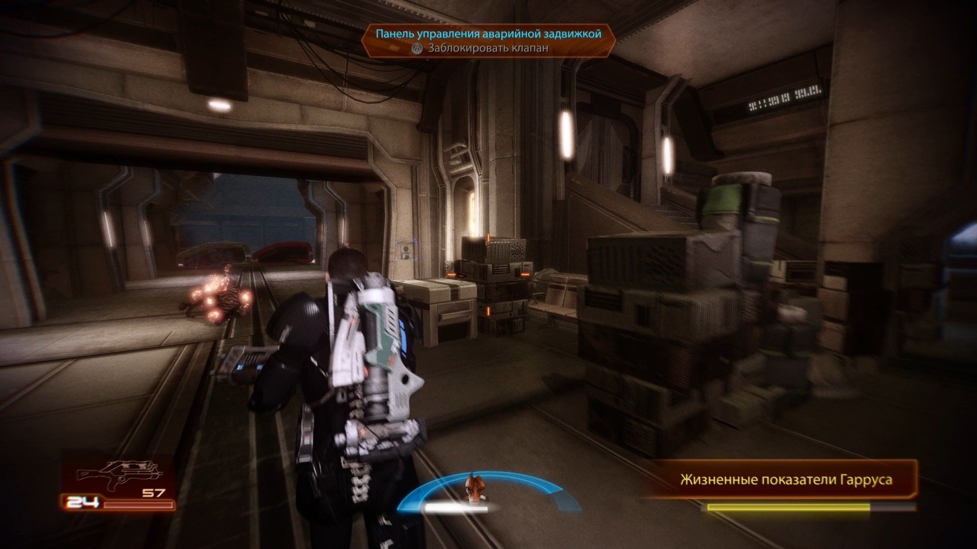 После этого поворачивайте направо в коридор, помеченный на указателе как Garage. Внутри пробивайтесь вперед и не задерживайтесь долго в укрытиях, так как время ограничено — Гаррус теряет здоровье. Доберитесь до кнопки закрытия клапана и возвращайтесь обратно в главную комнату. Теперь идите в коридор, обозначенный как Utility.