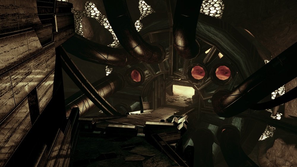 Когда справитесь с врагами, проходите дальше через дверь впереди, к которой ведет лестница.