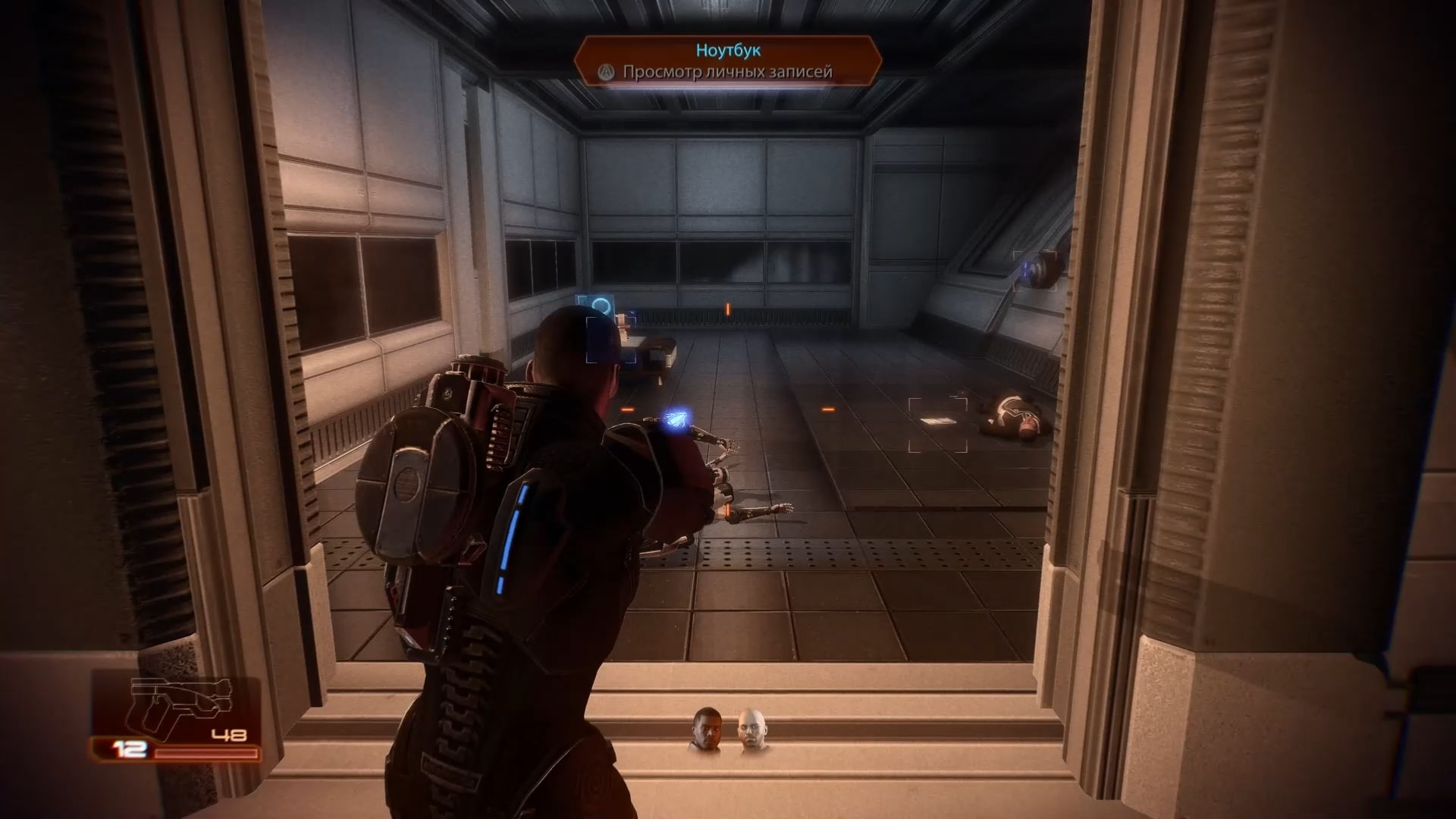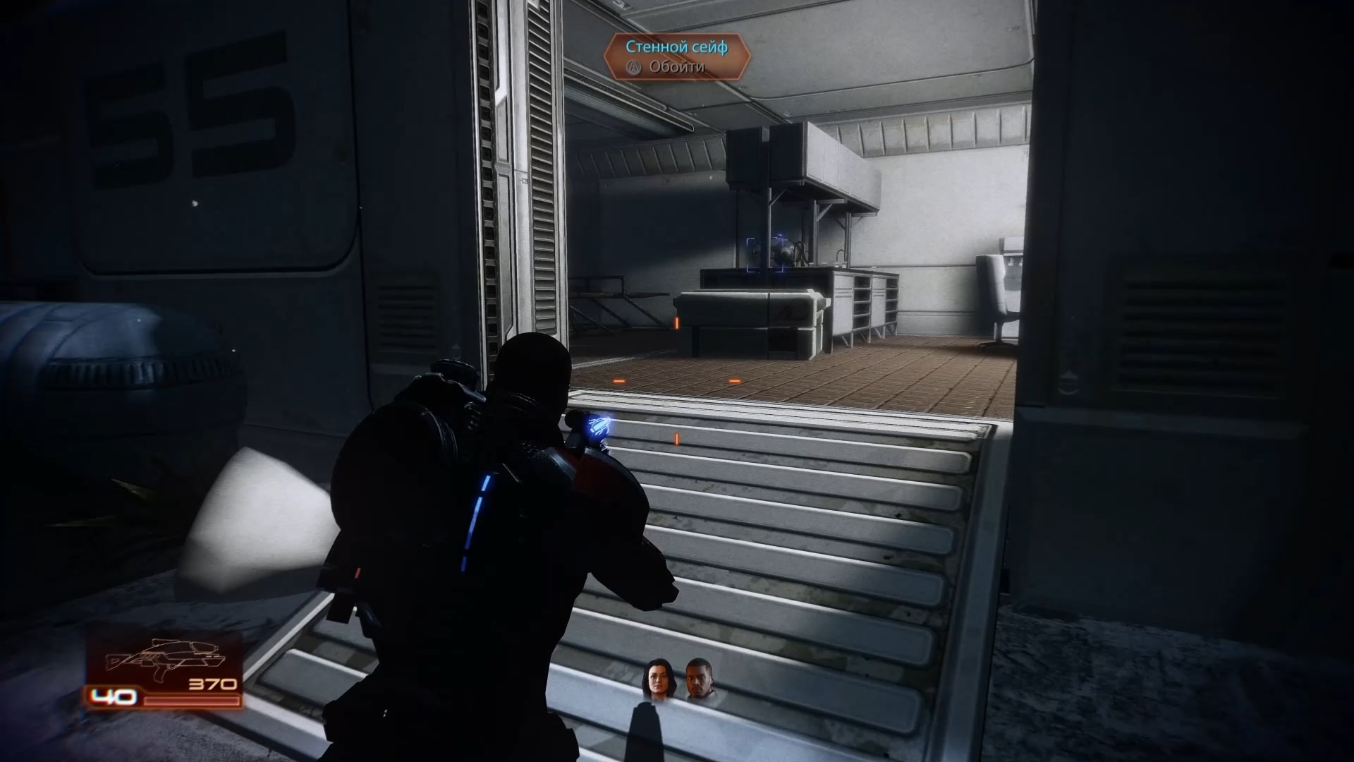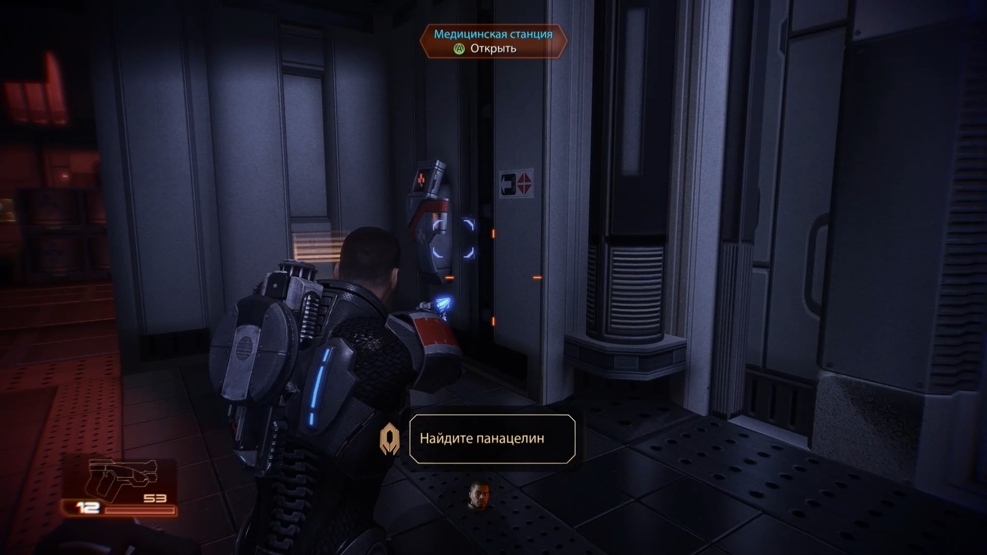Подождите пока Шепард встанет и подойдите к сейфу с пистолетом, следуя по желтым маркерам. По ходу дела игра научит прятаться за укрытиями. Вскоре окажется, что у пистолета нет боеприпасов. Подберите один магазин впереди перед закрытой дверью.
