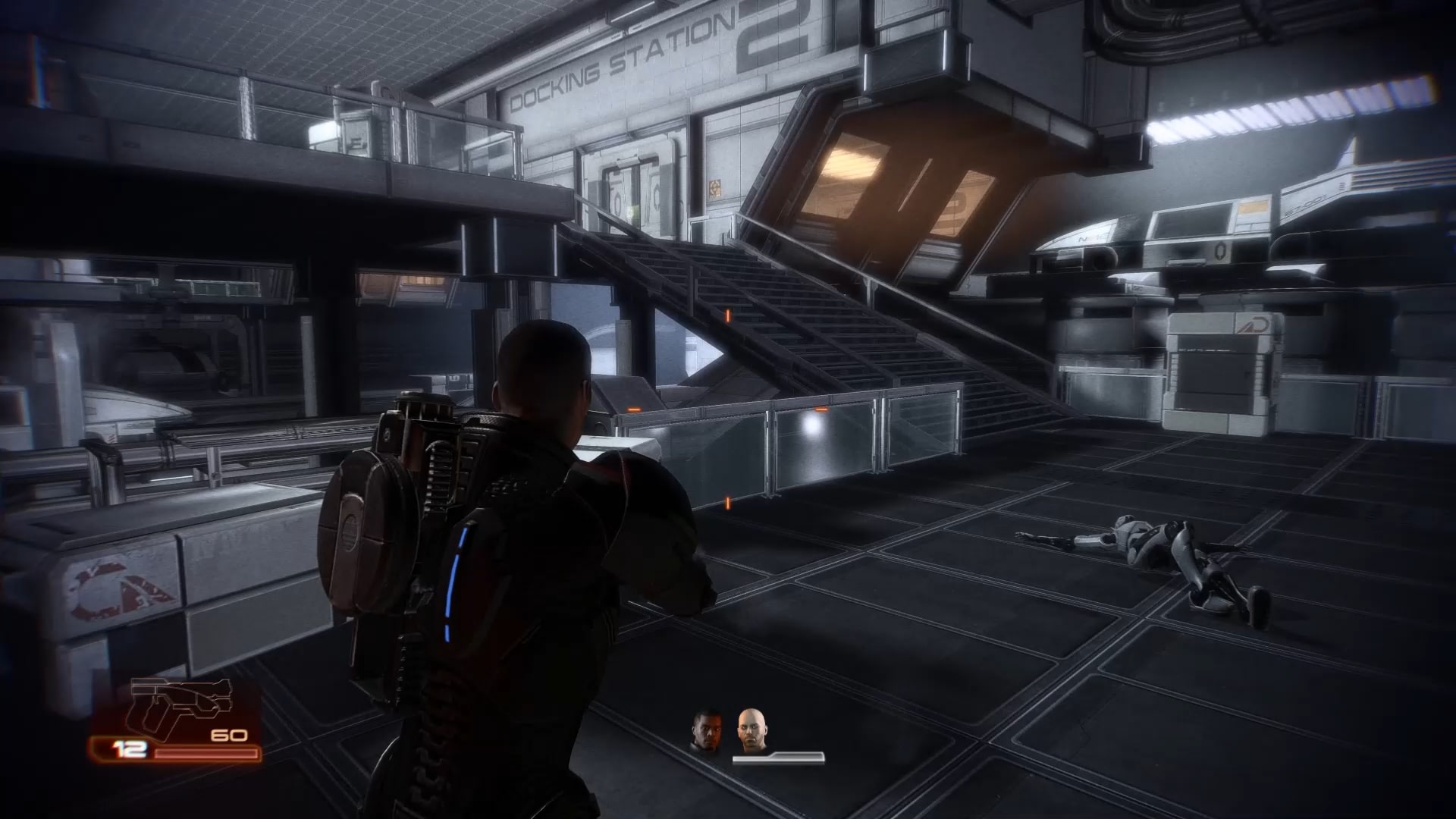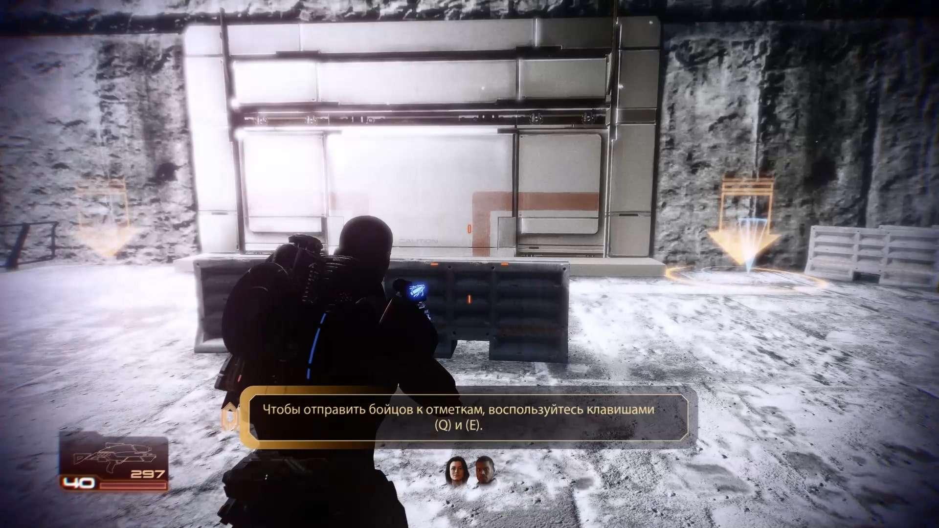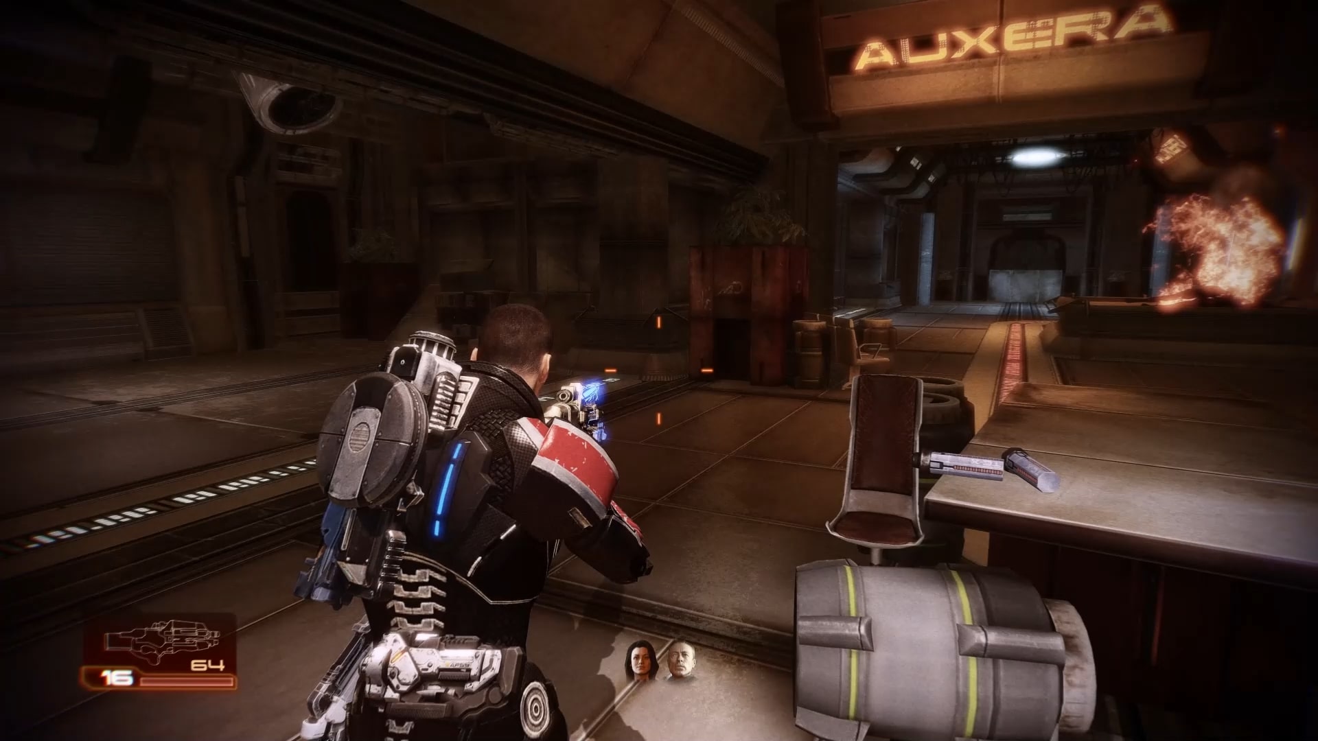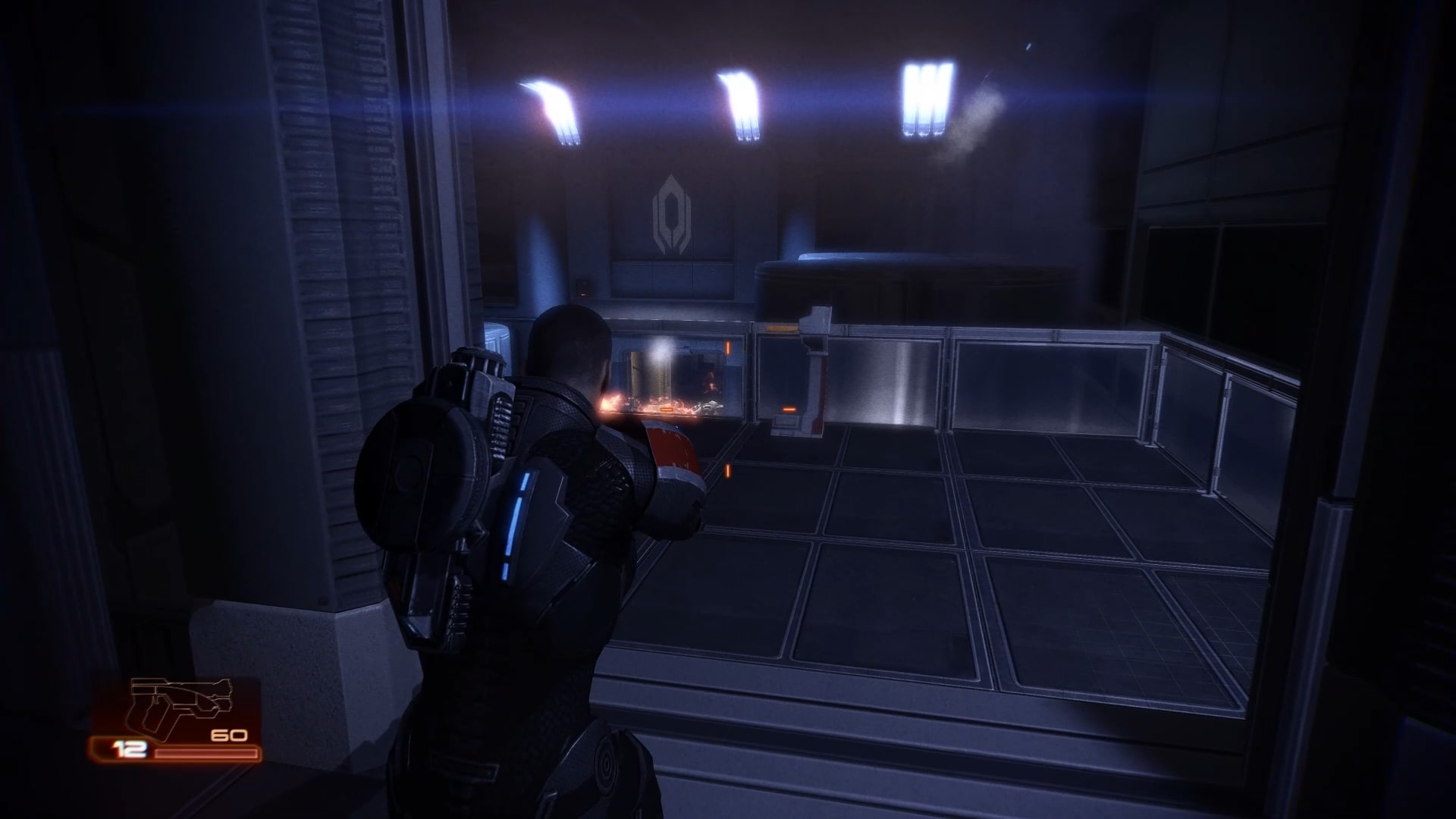 Подождите пока Шепард встанет и подойдите к сейфу с пистолетом, следуя по желтым маркерам. По ходу дела игра научит прятаться за укрытиями. Вскоре окажется, что у пистолета нет боеприпасов. Подберите один магазин впереди перед закрытой дверью.