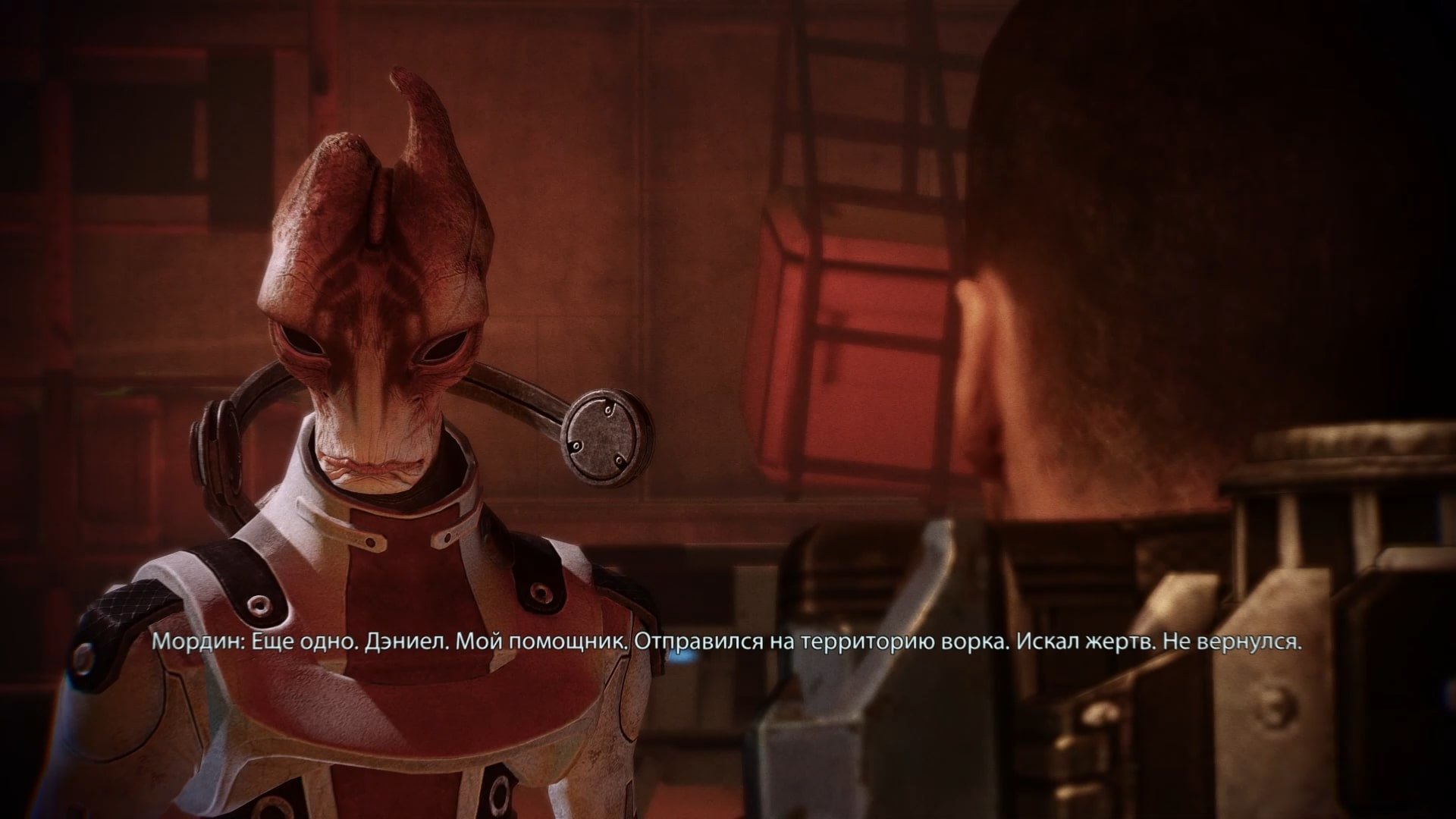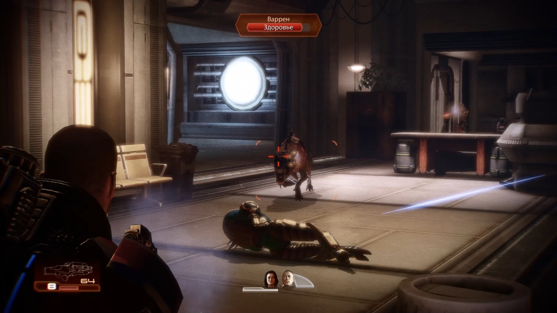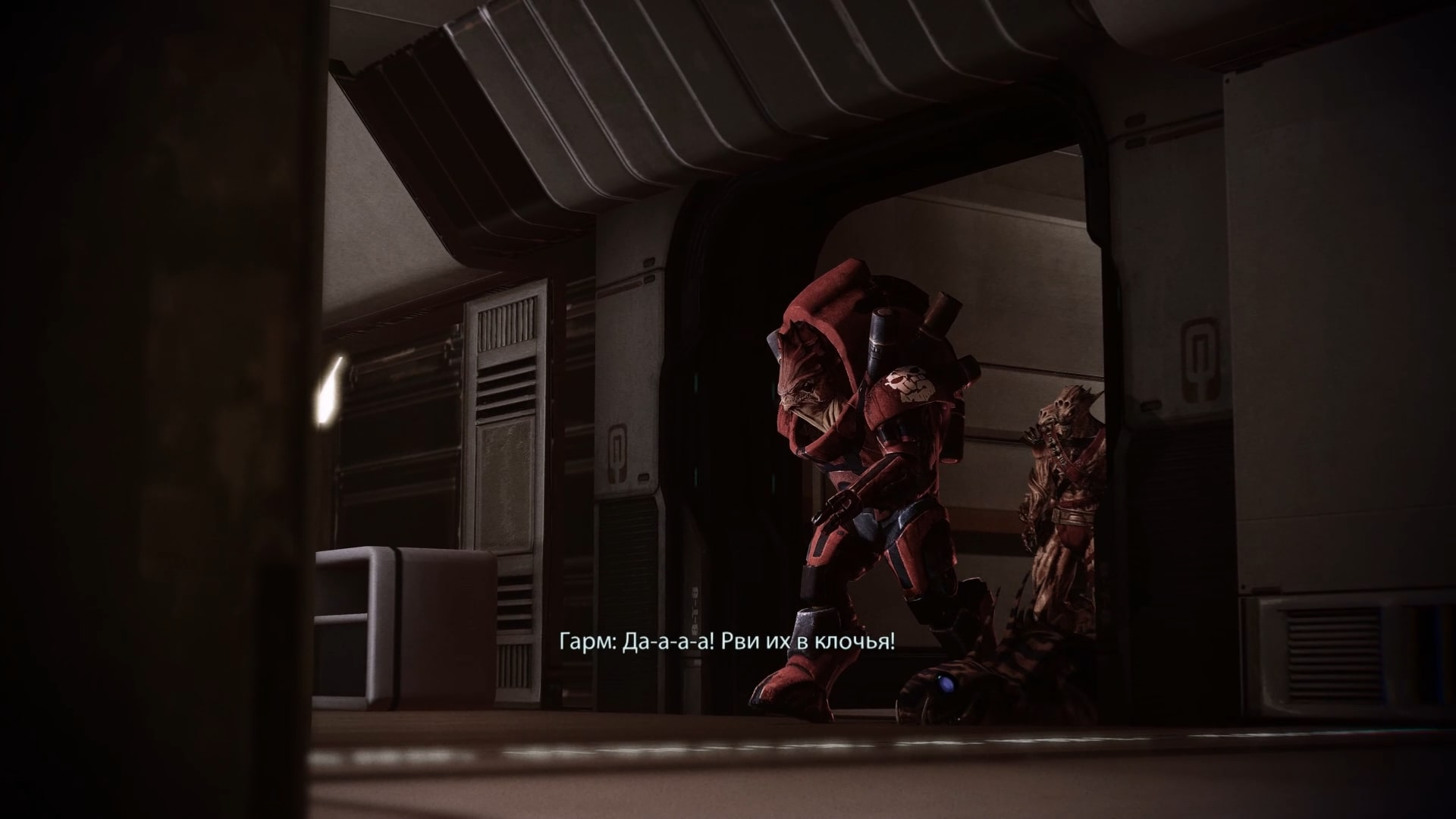 Но бой еще не закончен. Гарм вскроет дверь на нижнем этаже и придет со своим отрядом. Уничтожьте сначала его подручных и не подпускайте близко варренов. После этого поднимайтесь наверх, займите укрытие подальше от Гарма и расстреляйте его, пока он не убил Гарруса. Против щитов хорошо сработает биотика или дезинтегрирующие патроны.