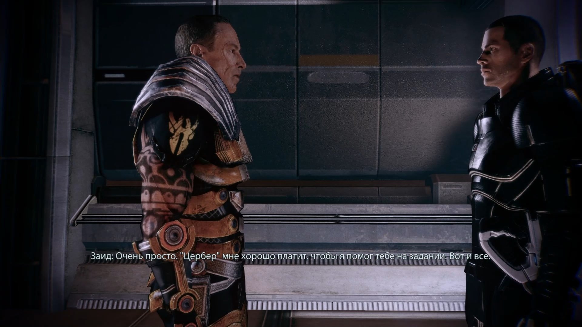 Но Ариа пока подождет. Сначала дойдите до конца коридора, не сворачивая. Вы повстречаетесь с Заидом — охотником за головами, одним из специалистов, которого нужно нанять для финальной миссии. После недолгого разговора он согласится присоединиться.