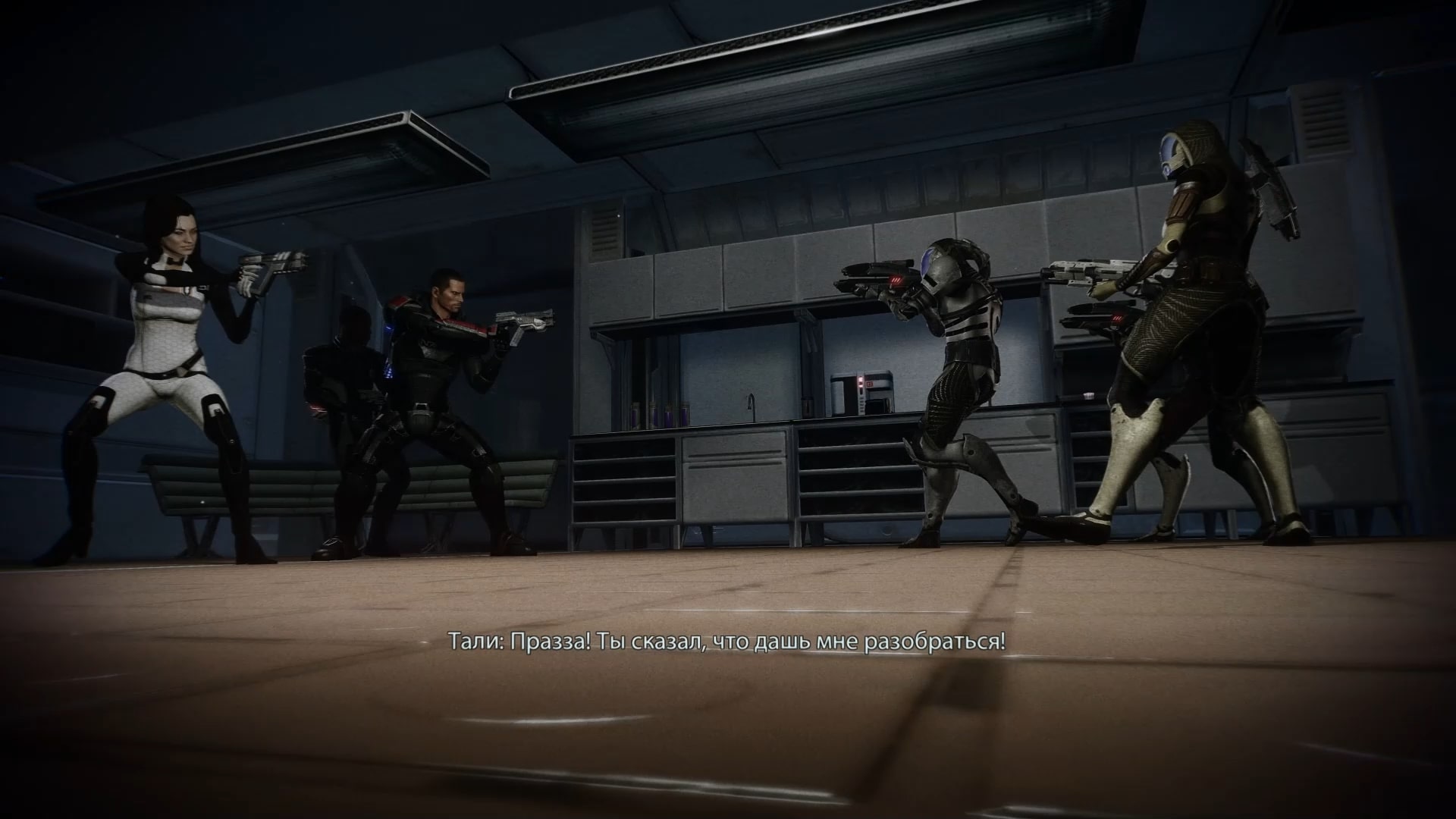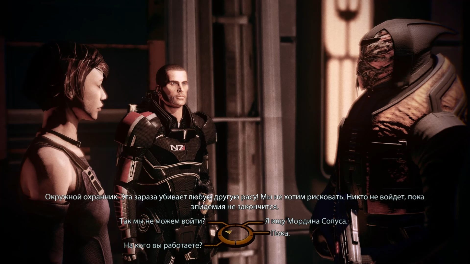 Когда войдете в следующее помещение, запустится катсцена. Ворка работают на коллекционеров и хотят распространить чуму по всей станции. А доктор Мордин хотел использовать ту же систему вентиляции, чтобы распылить лекарство.
