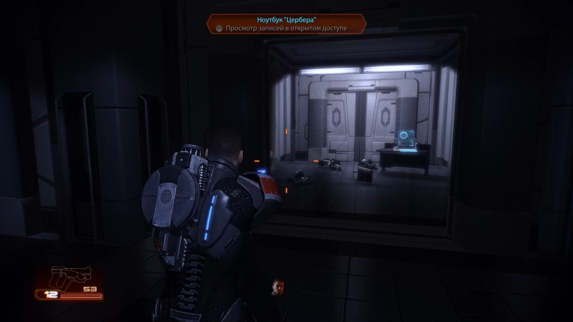 В одном из коридоров после заставы можно будет найти неплохую винтовку рядом с трупом турианца. Она добавит объект для исследования в лаборатории «Нормандии». Проходите далее и сохранитесь в длинном коридоре, прежде чем проходить в следующее помещение — далее ждет большой отряд противников.