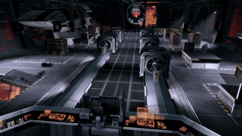 К сожалению, ангар в Mass Effect 2 недоступен для посещения и вернется лишь в Mass Effect 3.