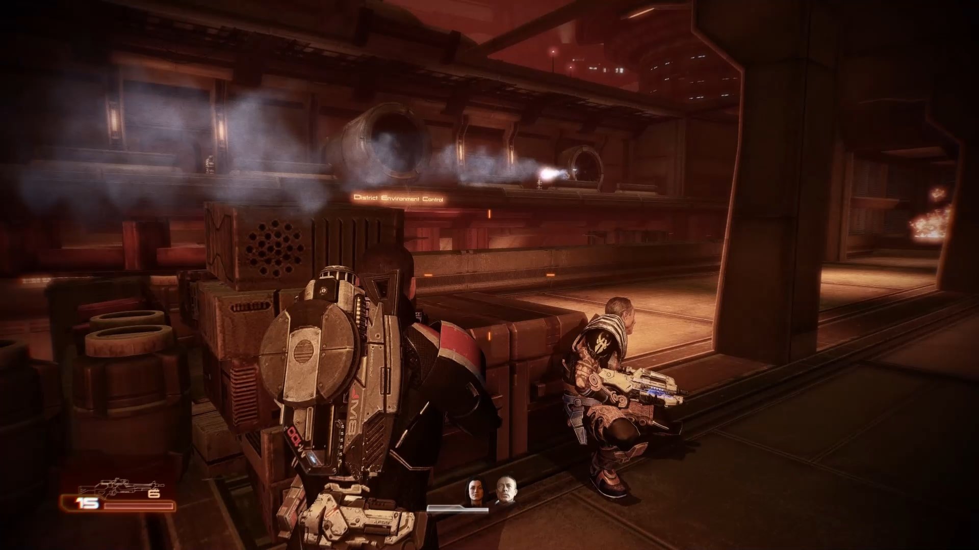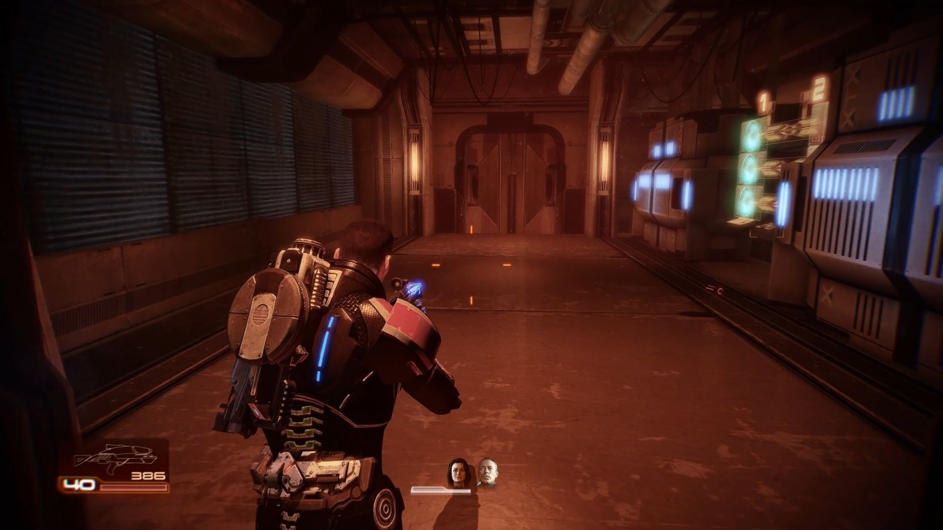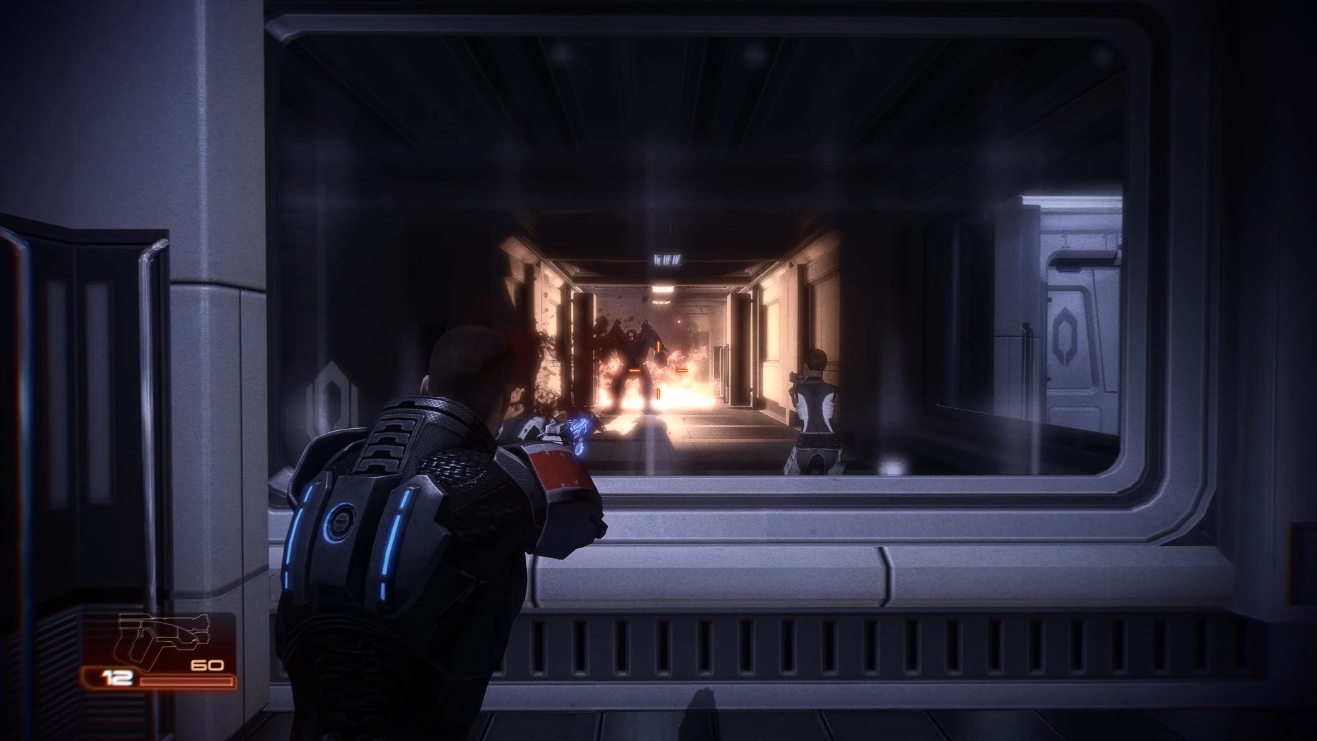Впереди будет длинный тесный коридор с множеством низких перегородок. Пользуйтесь укрытиями и уничтожайте врагов из дробовика или штурмовой винтовки. Когда доберетесь до поворота направо, не спешите покидать укрытие — впереди будет большая группа сильных врагов. Используйте против них тяжелое оружие, взрывчатку или биотику.
