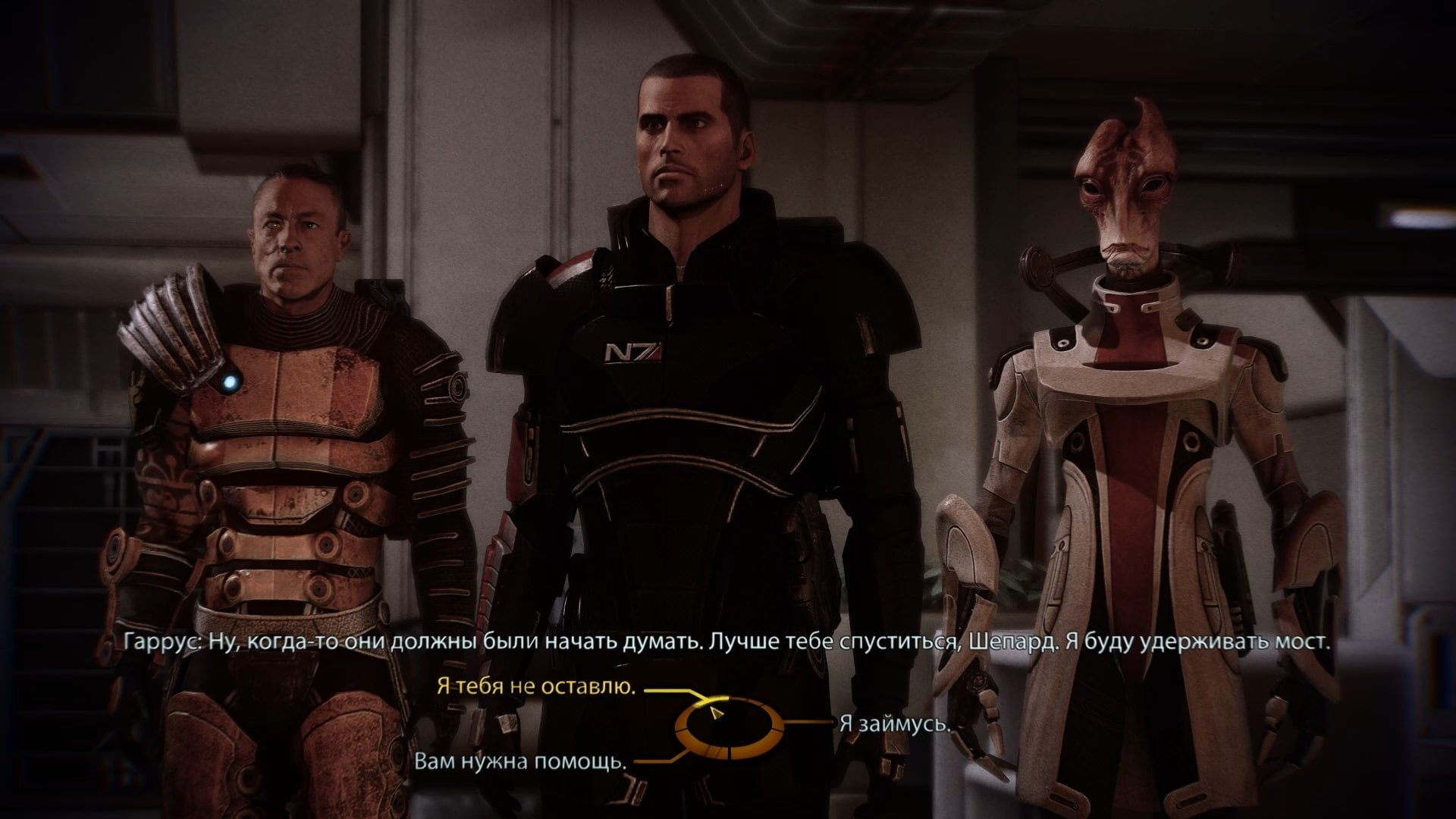 Гаррус попросит сходить и укрепить нижний уровень здания, а также оставить кого-то ему в помощь. Если отказаться, то очки его жизни будут убывать быстрее во время выполнения задания. Поэтому лучше согласиться.