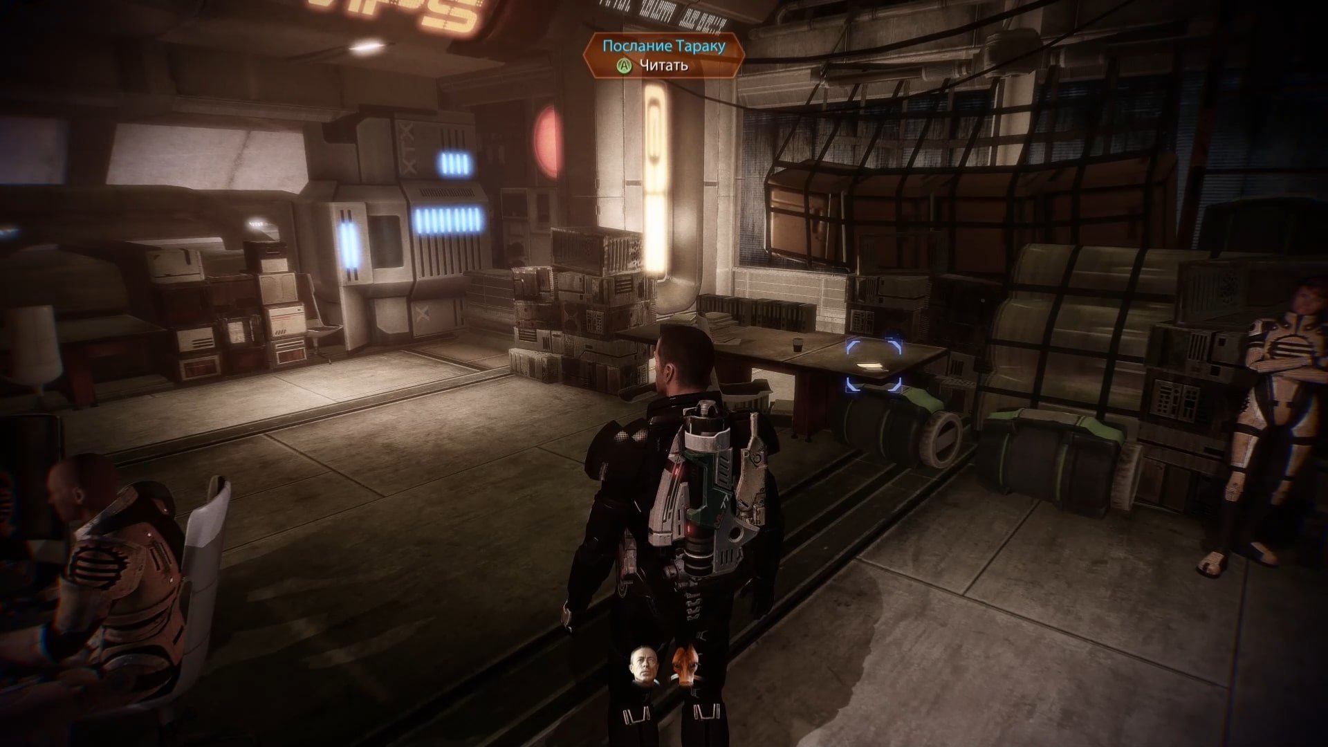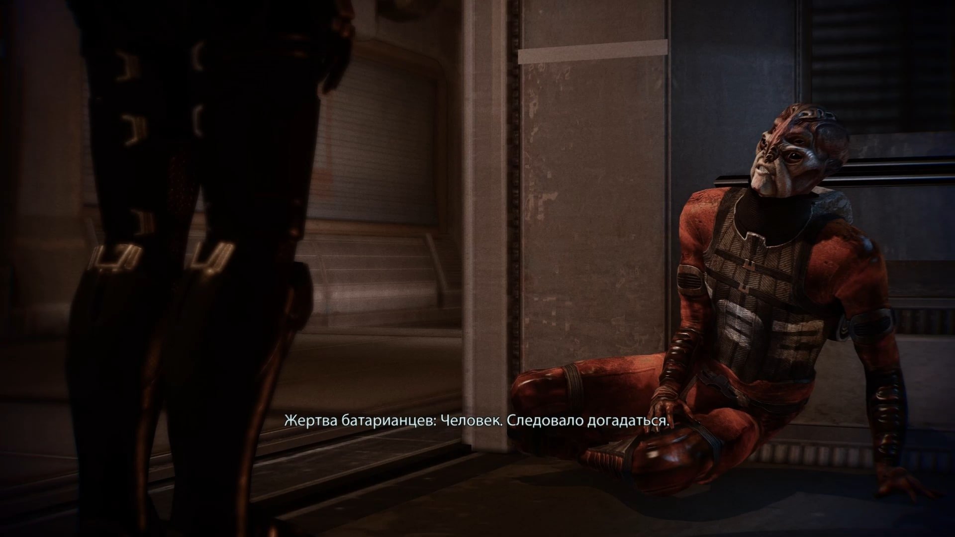 Также неподалеку найдете запертую дверь, которая приведет в еще одно складское помещение. В нем будет тело турианца и компьютер. Обыщите тело и прослушайте все 4 записи на компьютере. После этого обыщите оставшуюся часть помещения и поговорите с больным батарианцем. Он скажет более конкретно, где искать Профессора. Также можно получить дополнительные очки «Героя», если подлечить батарианца панацелином (нажать ЛКМ или левый курок на геймпаде, когда появится голубой значок в левом углу экрана), а затем пообещать, что пришлете подмогу от доктора Мордина.