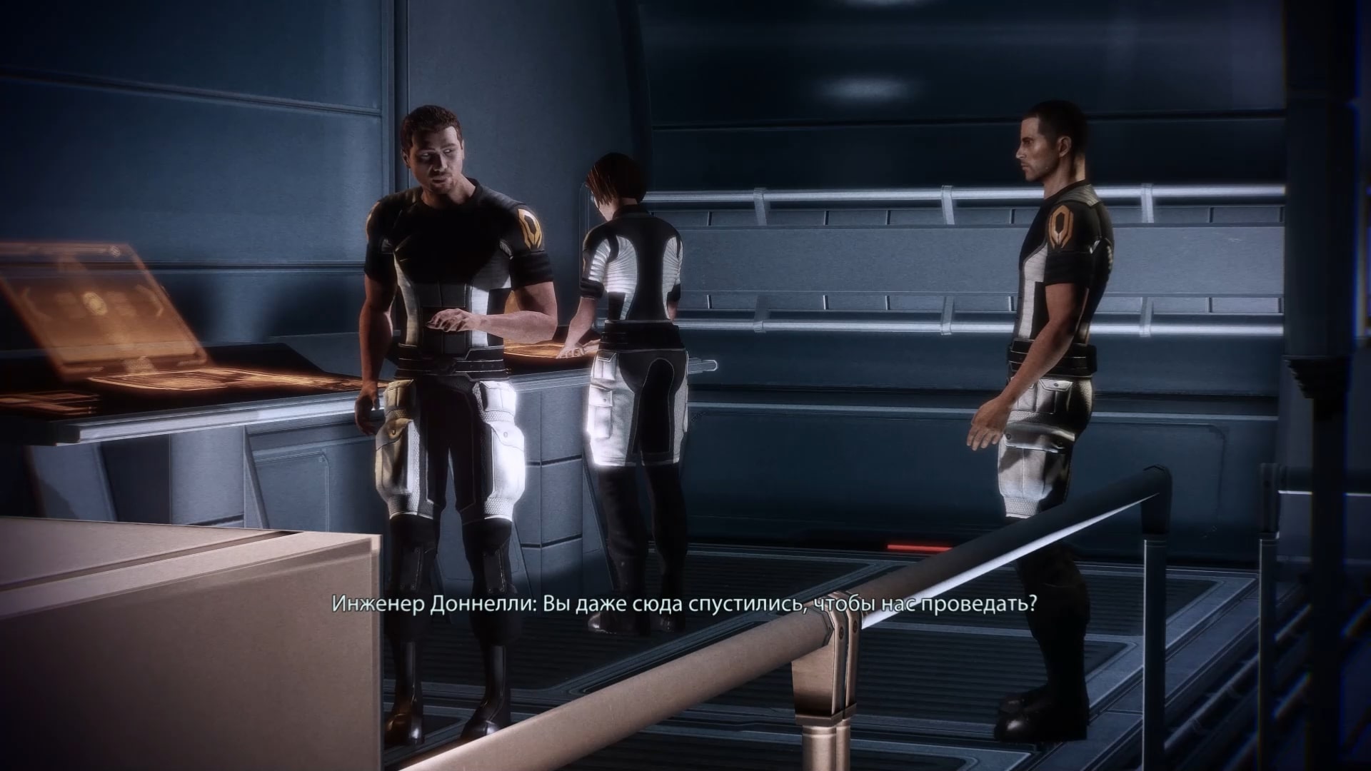 Последней палубой будет инженерный отсек. Там можно будет пообщаться с двумя забавными молодыми инженерами — парнем и девушкой. Они попросят поискать для них некие редкие детали, которые облегчат их работу и немного проапгрейдят «Нормандию». Помните, что для хорошей концовки нужно выполнить максимум побочных заданий, связанных с кораблем или членами команды. Поэтому — соглашайтесь.