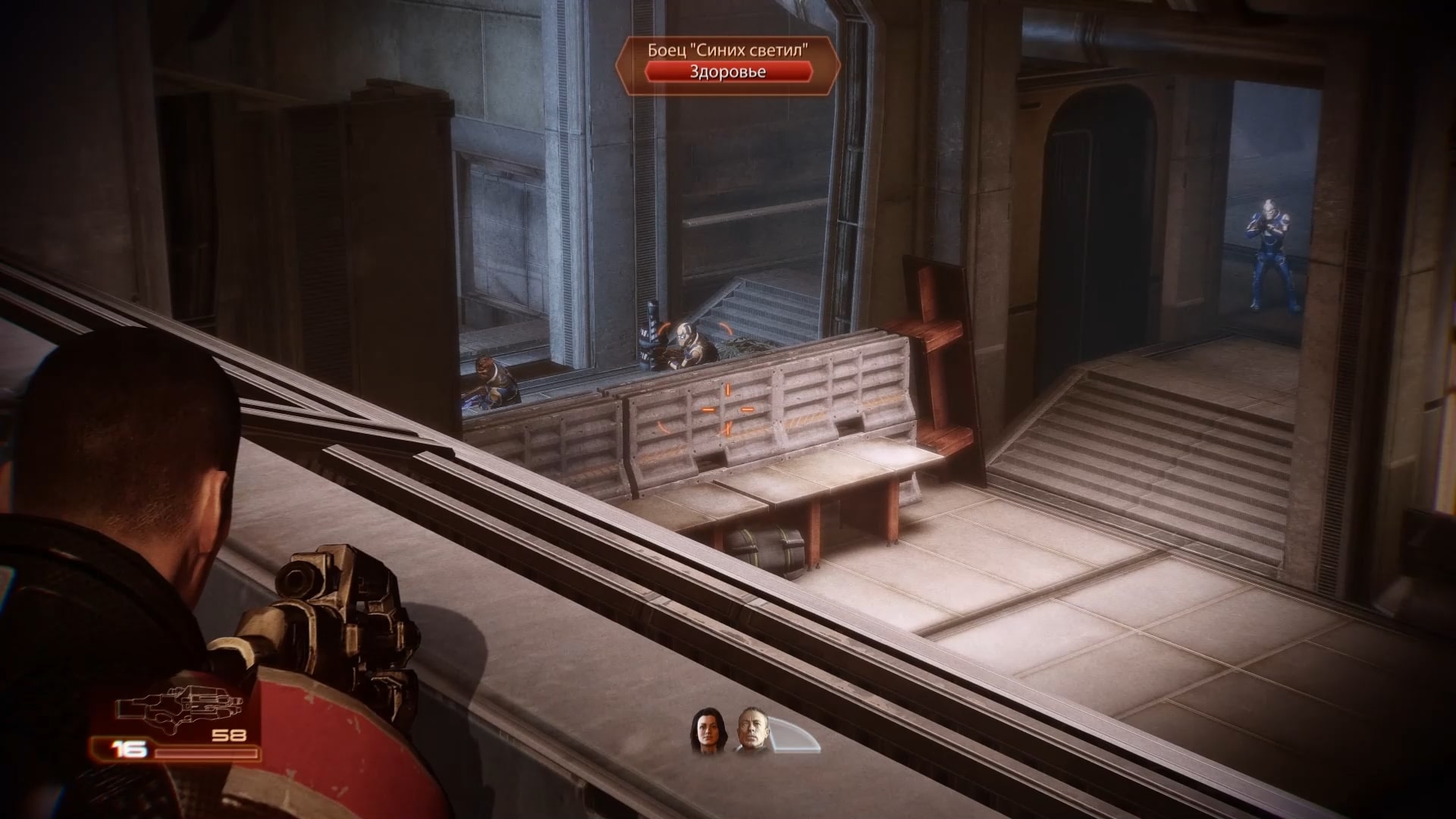 Не забудьте воспользоваться медицинской станцией по пути. В ней можно подобрать панацелин (аптечку). Проходите дальше через единственную дверь. Если вам не пришлось сражаться с заставой турианцев, то далее вас встретит лишь один охранник и пропустит. Спускайтесь вниз и подготовьтесь к сражению с первым отрядом «Синих светил». Займите укрытие возле лестницы, чтобы получить меньше урона.