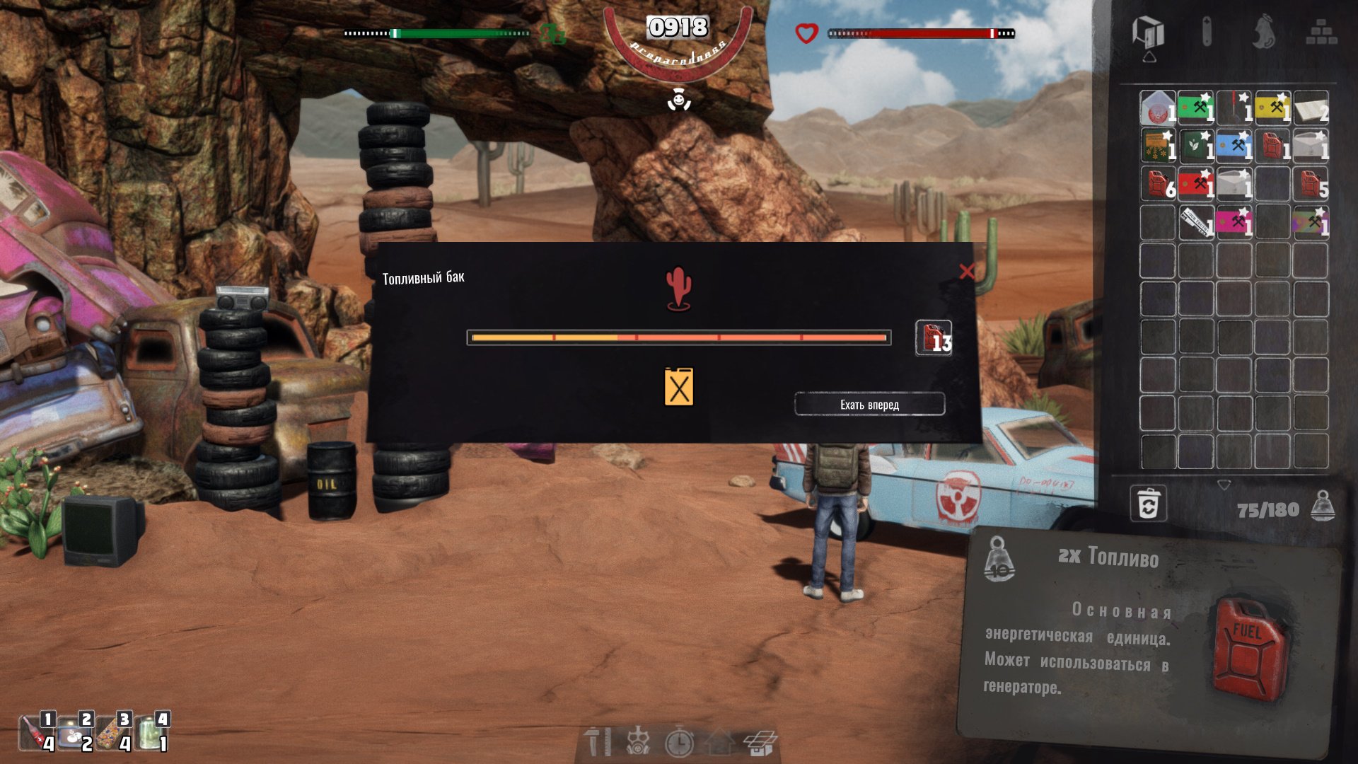 Вновь посетите Джо днем позже, чтобы взять следующее задание. Нужно собрать 5 электроники, после чего отдать их Джо. Вернитесь на следующий день, заберите антенну и садитесь на машину. Заправить ее следует практически полностью, чтобы можно было путешествовать пять раз к ряду вглубь пустыни. Впрочем, по пути вы сможете найти и другие источники топлива. Используйте ЛКМ, чтобы объезжать препятствия, и ускорение на трамплинах при помощи ПКМ. Во время каждой остановки можете взаимодействовать с антенной, но все это бесполезно, поскольку сигнал будет пойман только после пятого отрезка. Кроме того, при каждом посещении нового отрезка будет начинаться бой, так что заранее подготовьте оружие.