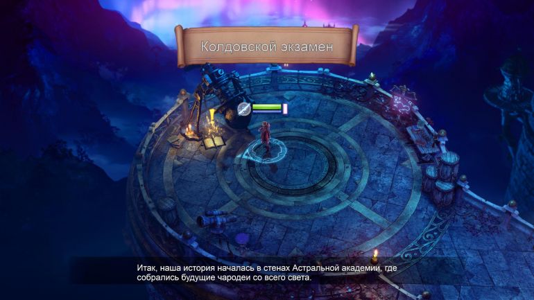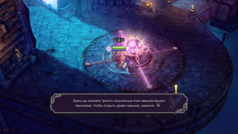 Пройдите направо и вниз и подберите первое писчее письмо Академии. Это коллекционный предмет — на данном уровне перо одно. Осмотрите огромную сферу на цепях — здесь вы сможете открывать новые навыки, используя заработанные при повышении уровня скил-поинты.