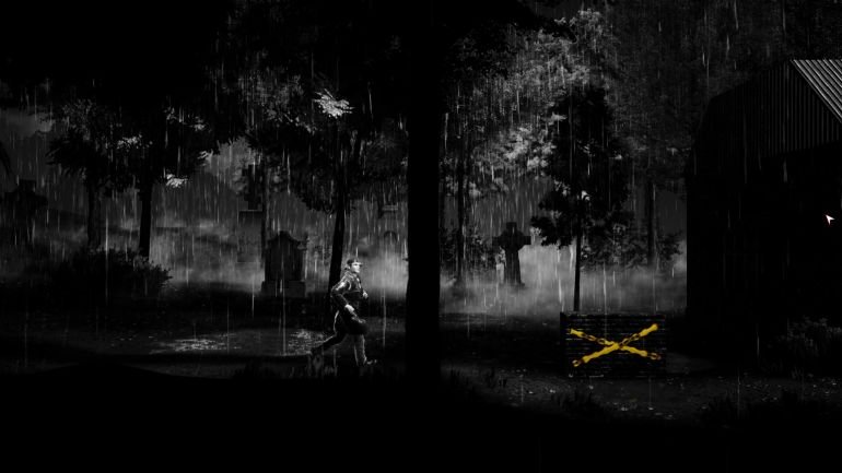 Бегите до первой кирпичной стены с жёлтой лентой. Пригнитесь, зажав левую клавишу CTRL, и перемещайтесь так вправо. Если на персонажа попадёт свет из окон (да и вообще какой-либо свет в игре), то он погибнет.