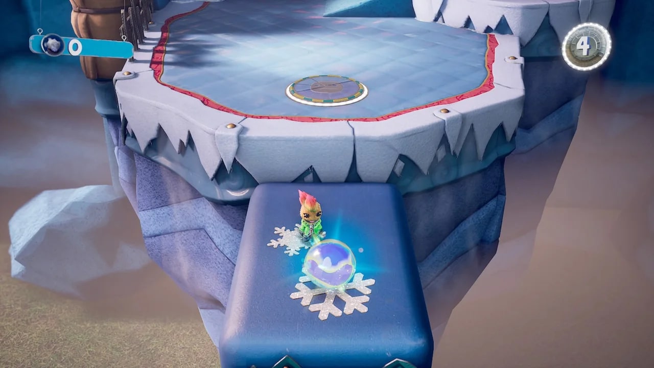 Продолжаем путь, находим под песочницами еще один приз и добираемся до экрана. На карте мира откроется уровень «В ледяной пещере». В этой локации необходимо добежать до финиша на время. За получение всех трех кубков откроем три сферы Мечтателей.