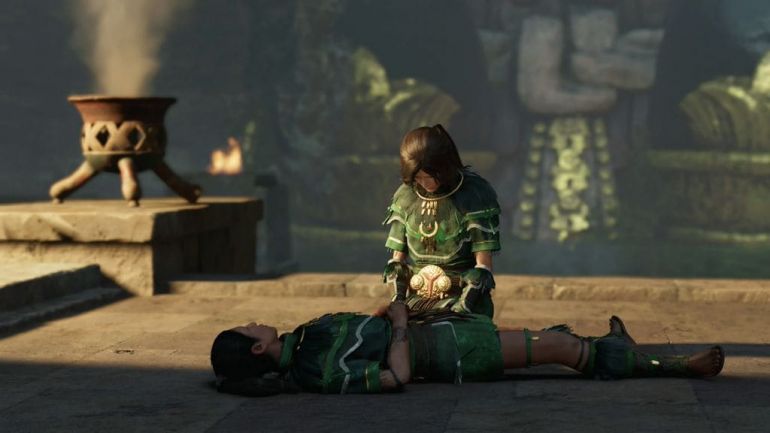 Здесь нужно перепрыгнуть через стену и поговорить с Унурату. Она будет грустна тем, что серебряный ларец спрятан в другом месте. Тем не менее, Лара подбодрит женщину и решит продолжить исследование.