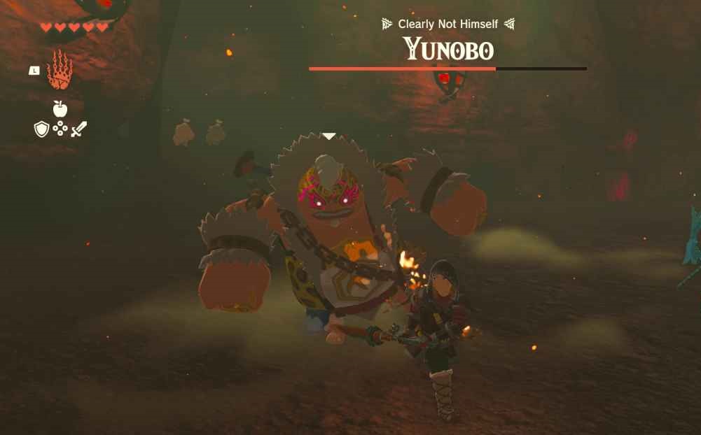 Надев доспехи, войдите в пещеру. Начнется битва с боссом. Дождитесь, когда злой Юнобо свернется в клубок. Бегите в сторону, чтобы он врезался в стену, и над головой появятся «звездочки». Быстро атакуйте, чтобы повредить маску. Повторите. Сделайте это трижды, пока не сломается злая маска. Бой завершится. Когда маска зла будет уничтожена, Юнобо станет дружелюбным NPC.
