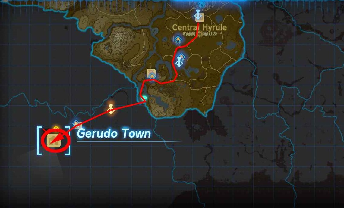 После завершения квеста в Элдине вашей следующей остановкой будет Герудо на юго-западе. Направляйтесь к маркеру (путь указан ниже):