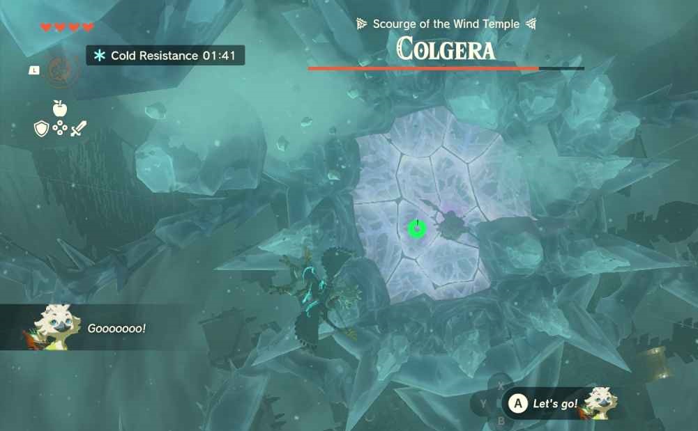 Атакуйте его способностью Сидона, чтобы включить последний кран. Наконец, взаимодействуйте с зеленым порталом на главной платформе в центре Храма Воды, чтобы начать битву с боссом. После боя заберите контейнер с сердцем и поговорите с Сидоном. После этого вы автоматически вернетесь в Домен Зоры.