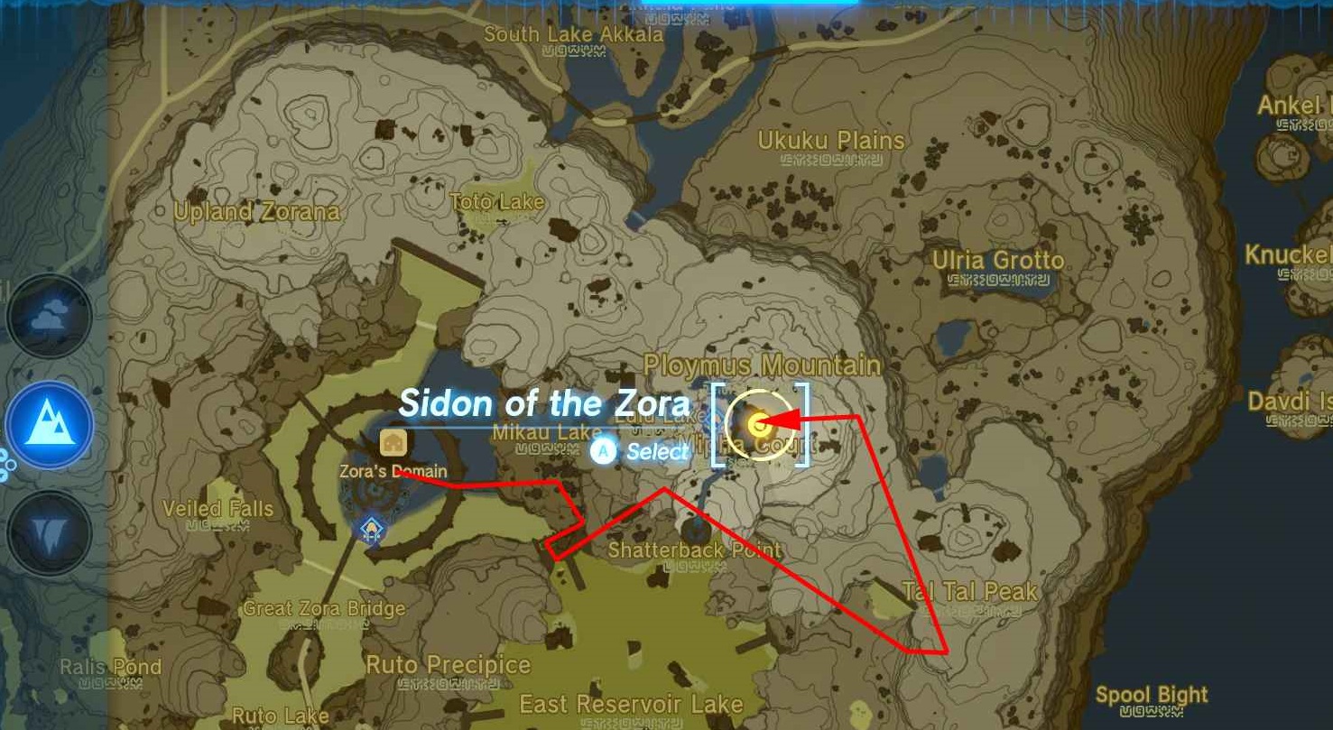 Квестовый маркер укажет на пещеру на озере Тото, но будьте внимательны — короля Дорефана там нет. Его точного местоположения на карте нет! Сначала вернитесь в Домен Зоры. Поднимитесь в тронный зал. Перед троном играют дети. Если приблизитесь, они вас отгонят. Заберитесь на трон так, чтобы оказаться позади детей. После этого подойдите к детям сзади, и появится подсказка. Выслушайте их, чтобы получить информацию о местонахождении короля Дорефана. Он находится в пещере за водопадом между горой Плоймус и владениями Зоры.