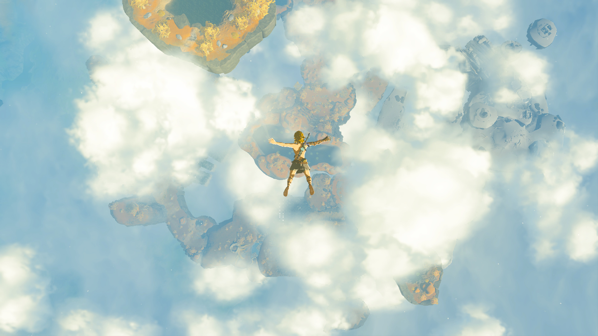 Идите туда, где приземлится один из камней. Встаньте на упавший камень и используйте возврат, чтобы подняться вверх. Когда он достигнет вершины, спрыгните и парите на остров Небесной Рыбы (на карте он называется Островом Плавающей Чешуи). Встаньте в середину вершины этого острова. Посмотрите на юго-запад, и увидите плавающие камни, которые образуют форму «слезы» или «капли дождя» (если смотреть под правильным углом). Вам нужно немного пройтись, пока камни не примут идеальную форму. Достаньте лук, прикрепите к стреле чешую короля, и пустите через форму капли дождя. Запустится кат-сцена, которая завершит квест. Если у вас закончилась чешуя, можете вернуться к королю Дорефану и получить другую.