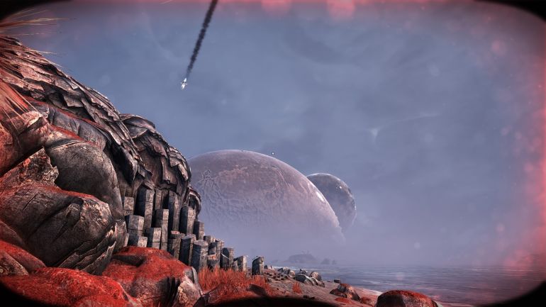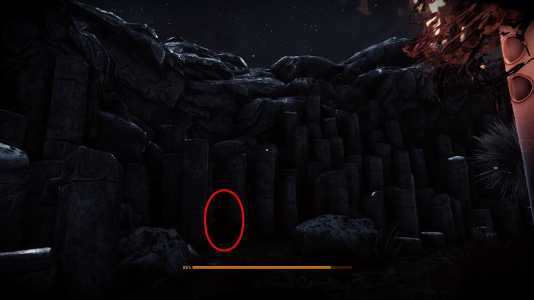 Если пойти вглубь острова, ближе к скалам, то можно отыскать проход между столбами к месту крушения. Но прежде чем направиться туда, исследуйте область справа от прохода, там лежит реликвия ночи.