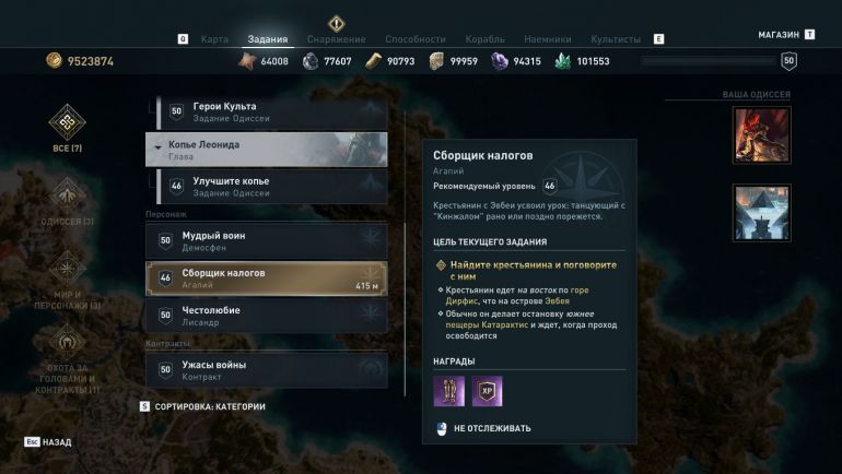 Отправляйтесь на халкидское хозяйство, где выполняли побочный квест «Сборщик налогов». Найдите крестьянина и пообщайтесь с ним, чтобы получить нужную информацию и завершить квест. В награду вам дадут очки опыта, драхмы и редкое снаряжение.