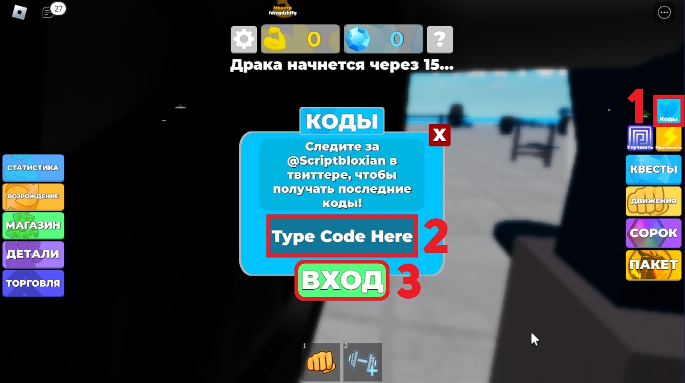 Как вводить промокоды в Muscle Legends («Легендах о мышцах»)