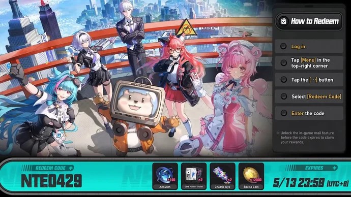 - NTE0429 — 100 аннюлита, 2 руководства для элитного охотника, 2 хаотических красителя, 12 000 монет с жуком