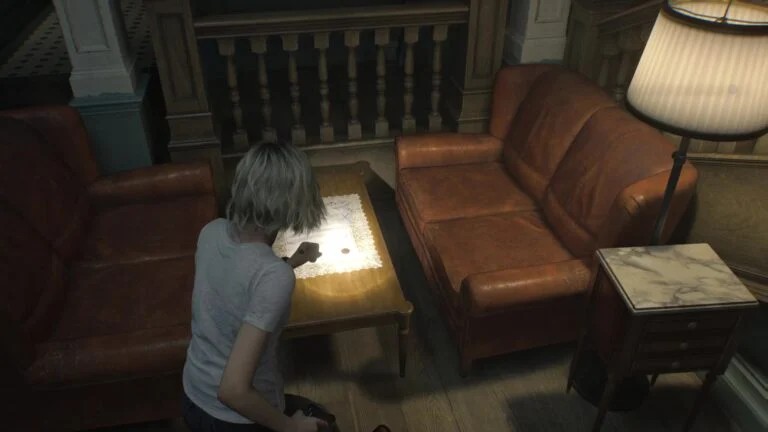 Непосредственно перед точкой невозврата, после которой вы больше не сможете попасть обратно в реабилитационный центр, во дворе можно найти стул с древней монетой. Это происходит уже после открытия двери в холле при помощи трех кварцевых предметов — луны, солнца и звезды. По сути, эта монета служит напоминанием о том, что вам стоит вернуться в гостиную. Забудете — не сможете приобрести их!
