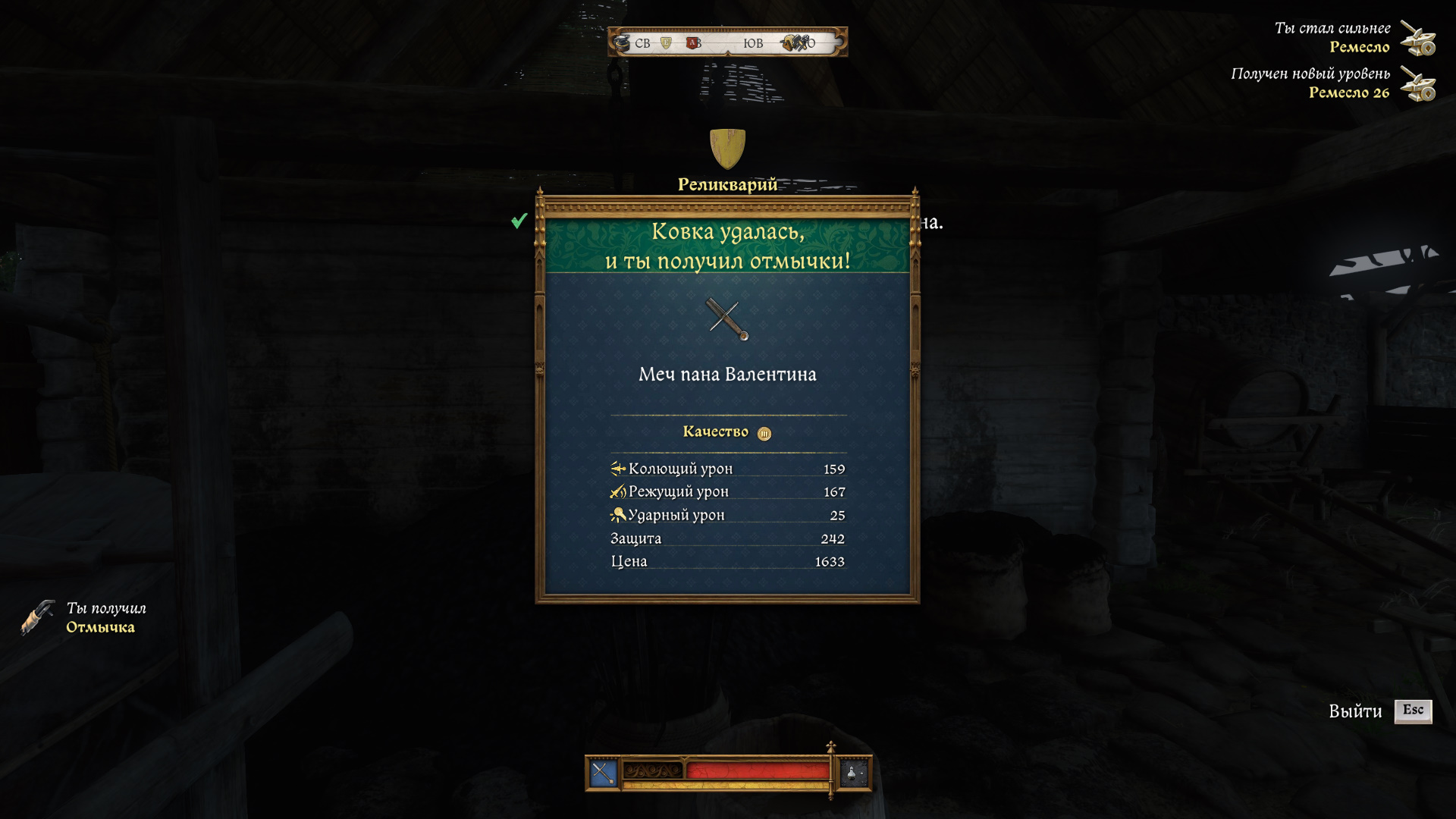 Следуйте в любую кузню. Насколько могу судить, абсолютно все материалы для крафта можно купить у кузнеца в Грунте, что к северу от Стара-Кутны. В Пржитоках живет мясник (на севере), и у него вы можете купить коровью шкуру. Как только изготовите реплику меча, отправляйтесь на северо-запад от Седлицкого монастыря и передайте оружие рыцарю, у которого взяли квест. Не забывайте, что вы без проблем можете создать еще одну копию меча для себя. Чтобы получить лучшее качество, бейте только по горячей заготовке (когда она желтая или золотистая, но не красная) и чаще ее переворачивайте.