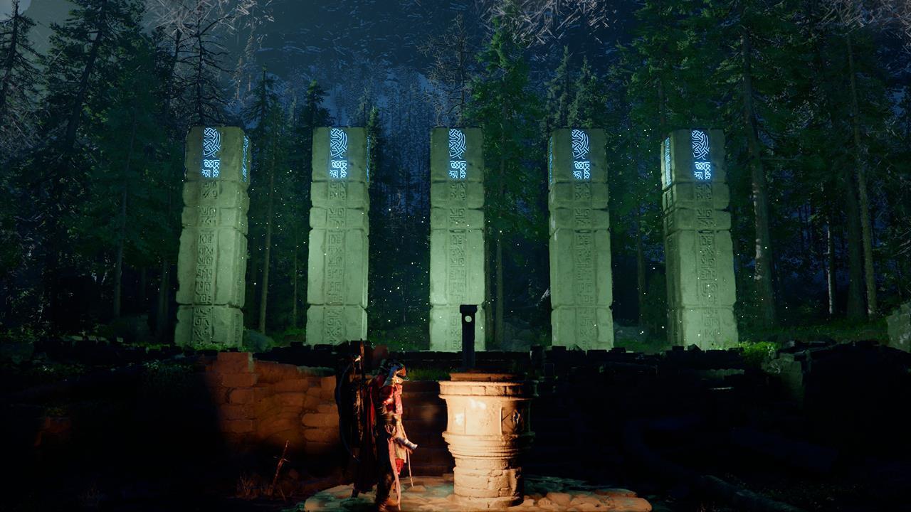 Головоломка похожа на загадку «Руин на холме в Сумрачном лесу». Просто взаимодействуйте с гнездами через «Колющий удар», чтобы поднимать и опускать определенные колонны. Нужно сделать так, чтобы все они были выстроены на одной высоте, как крайняя левая, которая не передвигается.
