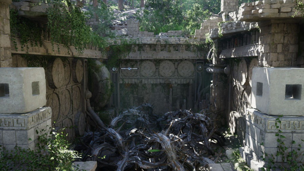 Перед руинами есть стена с трещиной в нижней части. Используйте «Удар с разворота», чтобы разрушить ее. Вода выльется из руин.